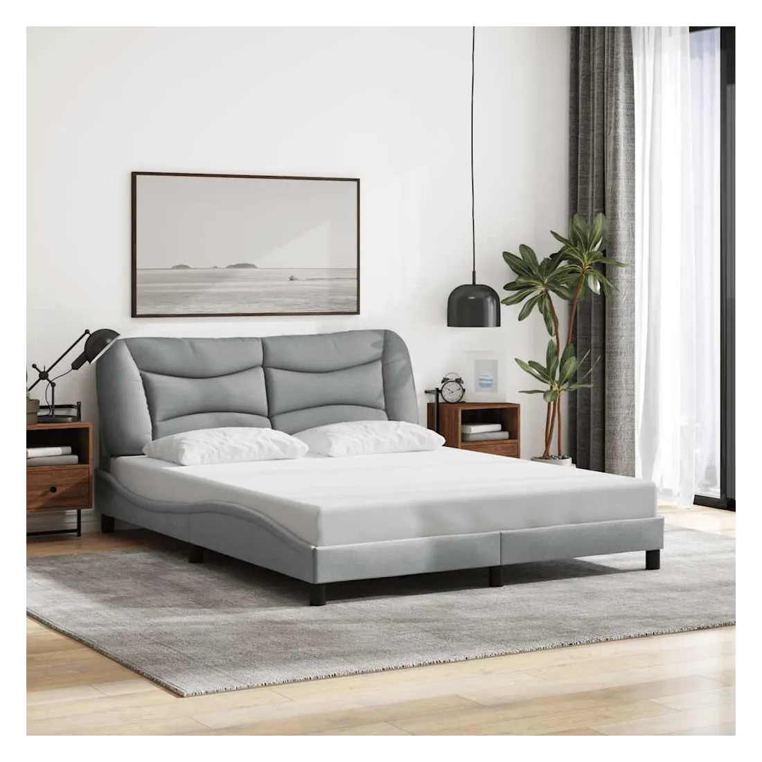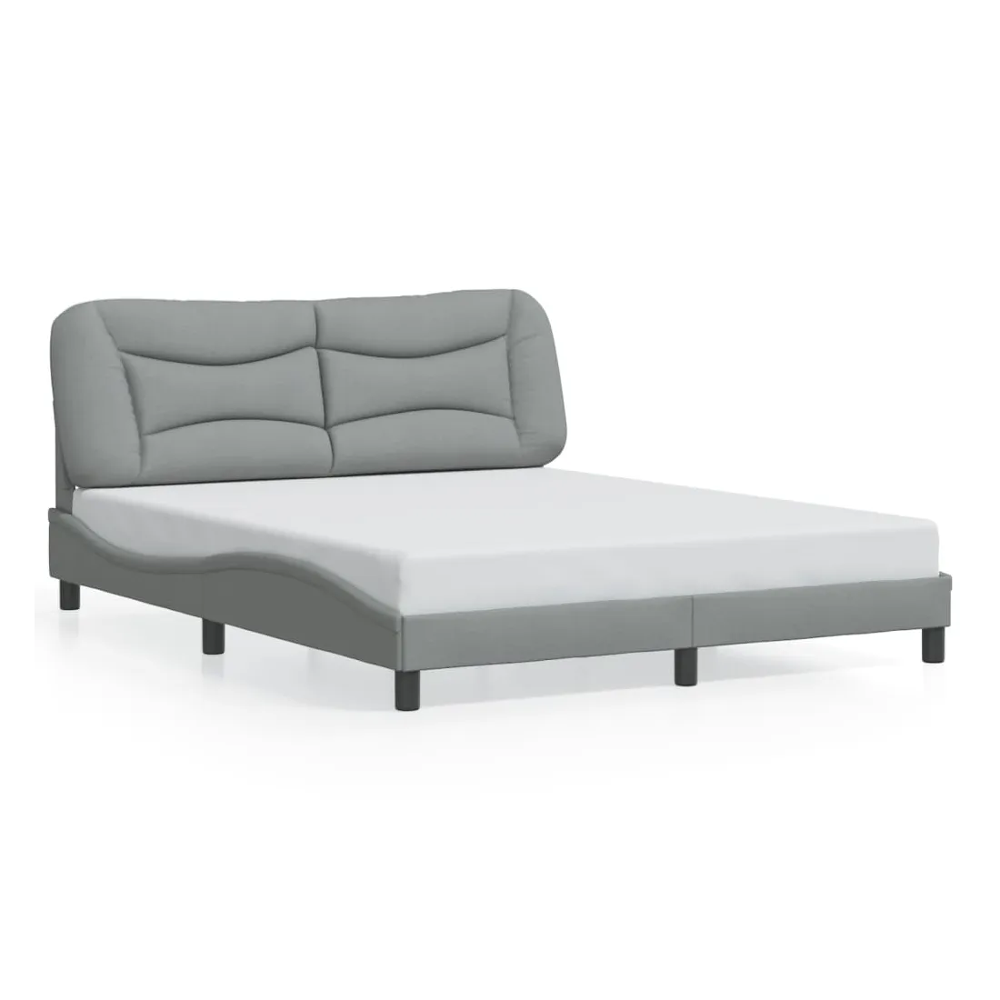 Obtenez une meilleure nuit de sommeil reposante grâce à ce cadre de lit avec tête de lit ! Il est un supplément accueillant à toute chambre à coucher. Tissu durable : le tissu présente un aspect simple et épuré tout en restant respirant, doux pour la peau et durable.Lattes de contreplaqué : les lattes de contreplaqué assurent une bonne répartition du poids, garantissant que le matelas reste en place à chaque torsion de votre corps pendant le sommeil.Excellent soutien : l'oreiller de tête de lit est rembourré avec de la fibre de polypropylène pour un confort ultra doux et optimal vous offre un excellent soutien du dos lorsque vous êtes assis dans votre lit pour lire ou regarder la télévision.Design pratique : le coussin de la tête de lit est doté d'une fermeture à glissière pour faciliter l'installation, et les bandes auto-agrippantes au dos peuvent être utilisées pour fixer les lampes LED.Design latéral ondulé : l’aspect ondulé du cadre de lit est élégant et sophistiqué, ajoutant une touche moderne et élégante à votre décor, ce qui en fait le point central de votre chambre à coucher. Bon à savoir :Un matelas n'est pas inclus avec ce lit. Nous offrons une sélection variée de matelas. Vous pouvez consulter notre boutique pour trouver un matelas assorti.