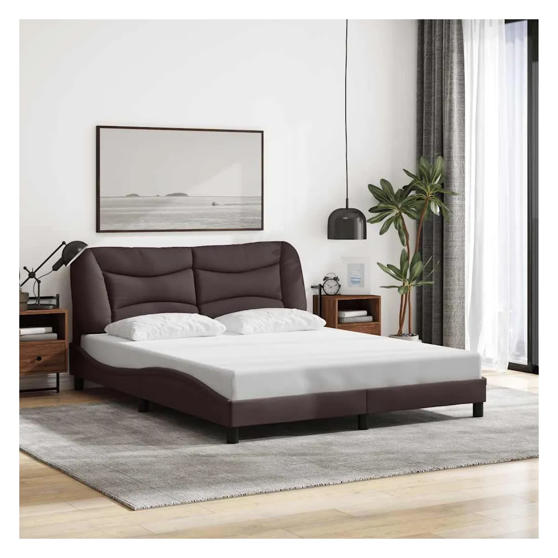vidaXLObtenez une meilleure nuit de sommeil reposante grâce à ce cadre de lit avec tête de lit ! Il est un supplément accueillant à toute chambre à coucher. Tissu durable : le tissu présente un aspect simple et épuré tout en restant respirant, doux pour la peau et durable.Lattes de contreplaqué : les lattes de contreplaqué assurent une bonne répartition du poids, garantissant que le matelas reste en place à chaque torsion de votre corps pendant le sommeil.Excellent soutien : l'oreiller de tête de lit est rembourré avec de la fibre de polypropylène pour un confort ultra doux et optimal vous offre un excellent soutien du dos lorsque vous êtes assis dans votre lit pour lire ou regarder la télévision.Design pratique : le coussin de la tête de lit est doté d'une fermeture à glissière pour faciliter l'installation, et les bandes auto-agrippantes au dos peuvent être utilisées pour fixer les lampes LED.Design latéral ondulé : l’aspect ondulé du cadre de lit est élégant et sophistiqué, ajoutant une touche moderne et élégante à votre décor, ce qui en fait le point central de votre chambre à coucher. Bon à savoir :Un matelas n'est pas inclus avec ce lit. Nous offrons une sélection variée de matelas. Vous pouvez consulter notre boutique pour trouver un matelas assorti.