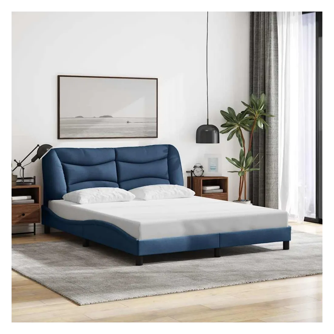 Obtenez une meilleure nuit de sommeil reposante grâce à ce cadre de lit avec tête de lit ! Il est un supplément accueillant à toute chambre à coucher. Tissu durable : le tissu présente un aspect simple et épuré tout en restant respirant, doux pour la peau et durable.Lattes de contreplaqué : les lattes de contreplaqué assurent une bonne répartition du poids, garantissant que le matelas reste en place à chaque torsion de votre corps pendant le sommeil.Excellent soutien : l'oreiller de tête de lit est rembourré avec de la fibre de polypropylène pour un confort ultra doux et optimal vous offre un excellent soutien du dos lorsque vous êtes assis dans votre lit pour lire ou regarder la télévision.Design pratique : le coussin de la tête de lit est doté d'une fermeture à glissière pour faciliter l'installation, et les bandes auto-agrippantes au dos peuvent être utilisées pour fixer les lampes LED.Design latéral ondulé : l’aspect ondulé du cadre de lit est élégant et sophistiqué, ajoutant une touche moderne et élégante à votre décor, ce qui en fait le point central de votre chambre à coucher. Bon à savoir :Un matelas n'est pas inclus avec ce lit. Nous offrons une sélection variée de matelas. Vous pouvez consulter notre boutique pour trouver un matelas assorti.