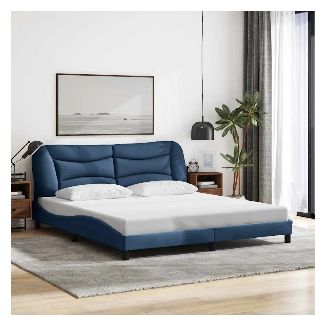 Obtenez une meilleure nuit de sommeil reposante grâce à ce cadre de lit avec tête de lit ! Il est un supplément accueillant à toute chambre à coucher. Tissu durable : le tissu présente un aspect simple et épuré tout en restant respirant, doux pour la peau et durable.Lattes de contreplaqué : les lattes de contreplaqué assurent une bonne répartition du poids, garantissant que le matelas reste en place à chaque torsion de votre corps pendant le sommeil.Excellent soutien : l'oreiller de tête de lit est rembourré avec de la fibre de polypropylène pour un confort ultra doux et optimal vous offre un excellent soutien du dos lorsque vous êtes assis dans votre lit pour lire ou regarder la télévision.Design pratique : le coussin de la tête de lit est doté d'une fermeture à glissière pour faciliter l'installation, et les bandes auto-agrippantes au dos peuvent être utilisées pour fixer les lampes LED.Design latéral ondulé : l’aspect ondulé du cadre de lit est élégant et sophistiqué, ajoutant une touche moderne et élégante à votre décor, ce qui en fait le point central de votre chambre à coucher. Bon à savoir :Un matelas n'est pas inclus avec ce lit. Nous offrons une sélection variée de matelas. Vous pouvez consulter notre boutique pour trouver un matelas assorti.