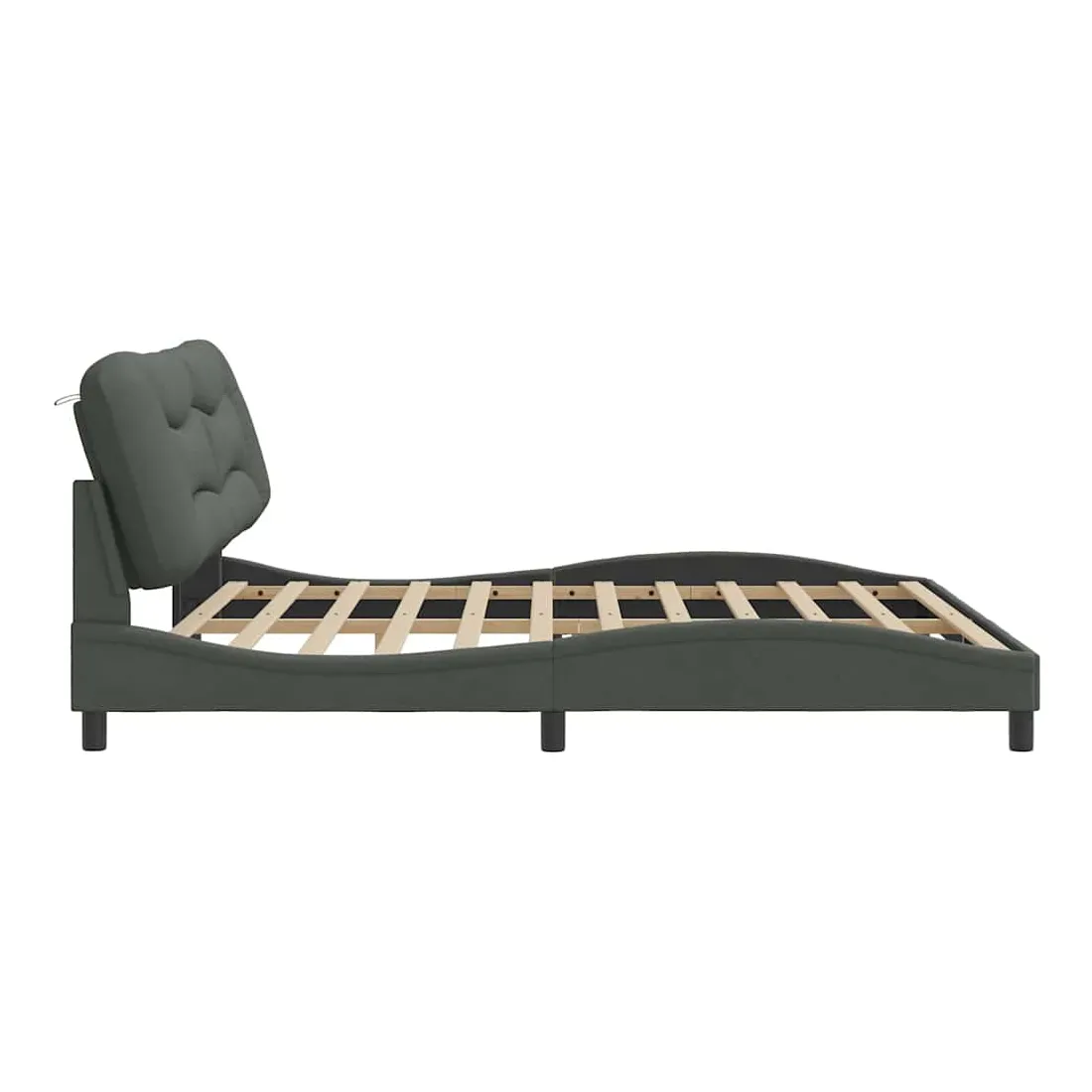 Obtenez une meilleure nuit de sommeil reposante grâce à ce cadre de lit avec tête de lit ! Il est un supplément accueillant à toute chambre à coucher. Tissu durable : le tissu présente un aspect simple et épuré tout en restant respirant, doux pour la peau et durable.Lattes de contreplaqué : les lattes de contreplaqué assurent une bonne répartition du poids, garantissant que le matelas reste en place à chaque torsion de votre corps pendant le sommeil.Excellent soutien : l'oreiller de tête de lit est rembourré avec de la fibre de polypropylène pour un confort ultra doux et optimal vous offre un excellent soutien du dos lorsque vous êtes assis dans votre lit pour lire ou regarder la télévision.Design pratique : le coussin de la tête de lit est doté d'une fermeture à glissière pour faciliter l'installation, et les bandes auto-agrippantes au dos peuvent être utilisées pour fixer les lampes LED.Design latéral ondulé : l’aspect ondulé du cadre de lit est élégant et sophistiqué, ajoutant une touche moderne et élégante à votre décor, ce qui en fait le point central de votre chambre à coucher. Bon à savoir :Un matelas n'est pas inclus avec ce lit. Nous offrons une sélection variée de matelas. Vous pouvez consulter notre boutique pour trouver un matelas assorti.