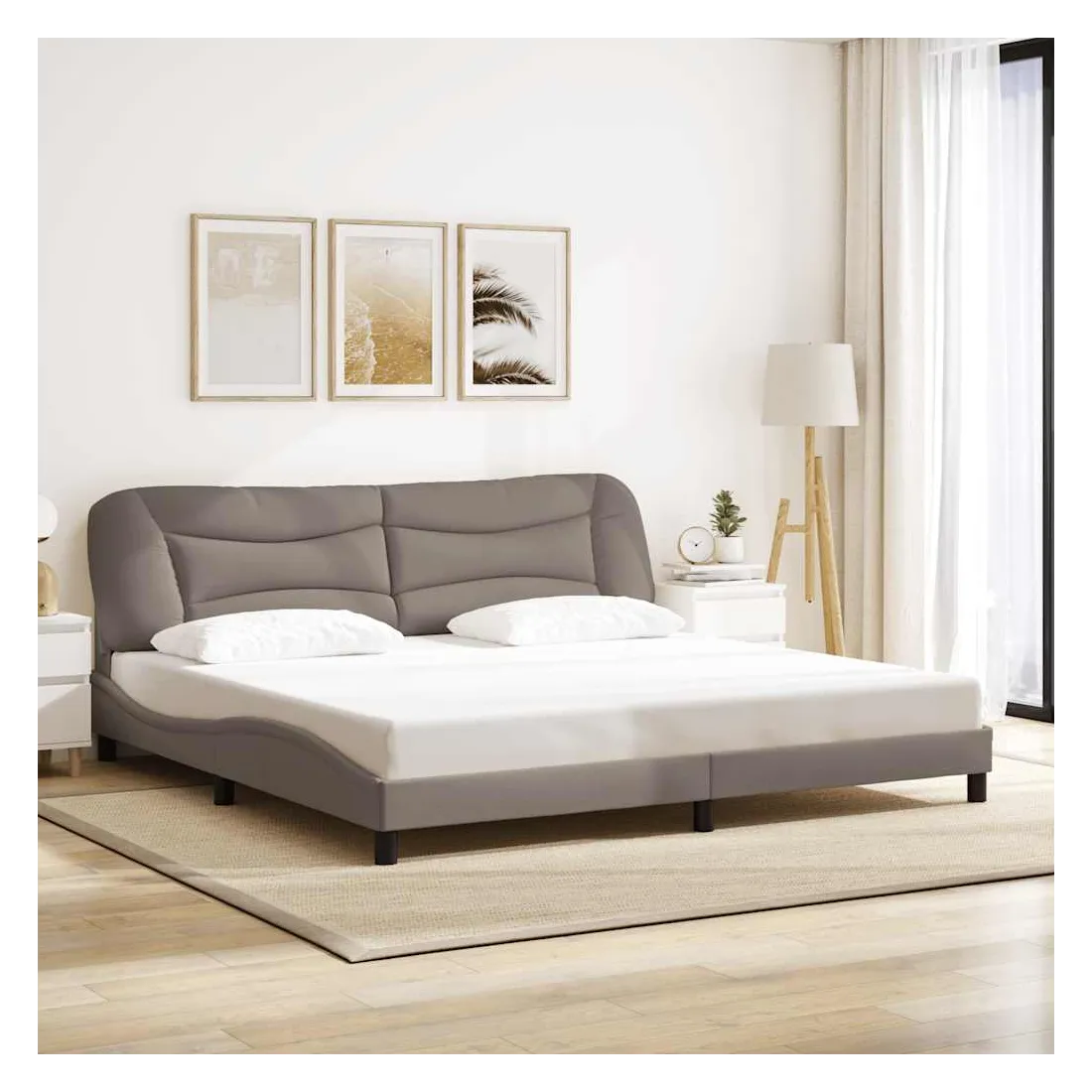Obtenez une meilleure nuit de sommeil reposante grâce à ce cadre de lit avec tête de lit ! Il est un supplément accueillant à toute chambre à coucher. Tissu durable : le tissu présente un aspect simple et épuré tout en restant respirant, doux pour la peau et durable.Lattes de contreplaqué : les lattes de contreplaqué assurent une bonne répartition du poids, garantissant que le matelas reste en place à chaque torsion de votre corps pendant le sommeil.Excellent soutien : l'oreiller de tête de lit est rembourré avec de la fibre de polypropylène pour un confort ultra doux et optimal vous offre un excellent soutien du dos lorsque vous êtes assis dans votre lit pour lire ou regarder la télévision.Design pratique : le coussin de la tête de lit est doté d'une fermeture à glissière pour faciliter l'installation, et les bandes auto-agrippantes au dos peuvent être utilisées pour fixer les lampes LED.Design latéral ondulé : l’aspect ondulé du cadre de lit est élégant et sophistiqué, ajoutant une touche moderne et élégante à votre décor, ce qui en fait le point central de votre chambre à coucher. Bon à savoir :Un matelas n'est pas inclus avec ce lit. Nous offrons une sélection variée de matelas. Vous pouvez consulter notre boutique pour trouver un matelas assorti.
