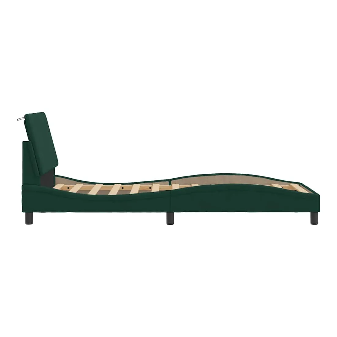 Obtenez une meilleure nuit de sommeil reposante grâce à ce cadre de lit avec tête de lit ! Il est un supplément accueillant à toute chambre à coucher. Velours doux : le velours est un tissu doux et confortable, agréable au toucher.Lattes de contreplaqué : les lattes de contreplaqué assurent une bonne répartition du poids, garantissant que le matelas reste en place à chaque torsion de votre corps pendant le sommeil.Excellent soutien : l'oreiller de tête de lit est rembourré avec de la mousse pour un confort ultra doux et optimal vous offre un excellent soutien du dos lorsque vous êtes assis dans votre lit pour lire ou regarder la télévision.Design pratique : le coussin de la tête de lit est doté d'une fermeture à glissière pour faciliter l'installation, et les bandes auto-agrippantes au dos peuvent être utilisées pour fixer les lampes LED.Design latéral ondulé : l’aspect ondulé du cadre de lit est élégant et sophistiqué, ajoutant une touche moderne et élégante à votre décor, ce qui en fait le point central de votre chambre à coucher. Bon à savoir :Un matelas n'est pas inclus avec ce lit. Nous offrons une sélection variée de matelas. Vous pouvez consulter notre boutique pour trouver un matelas assorti.