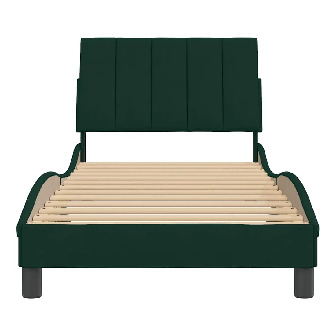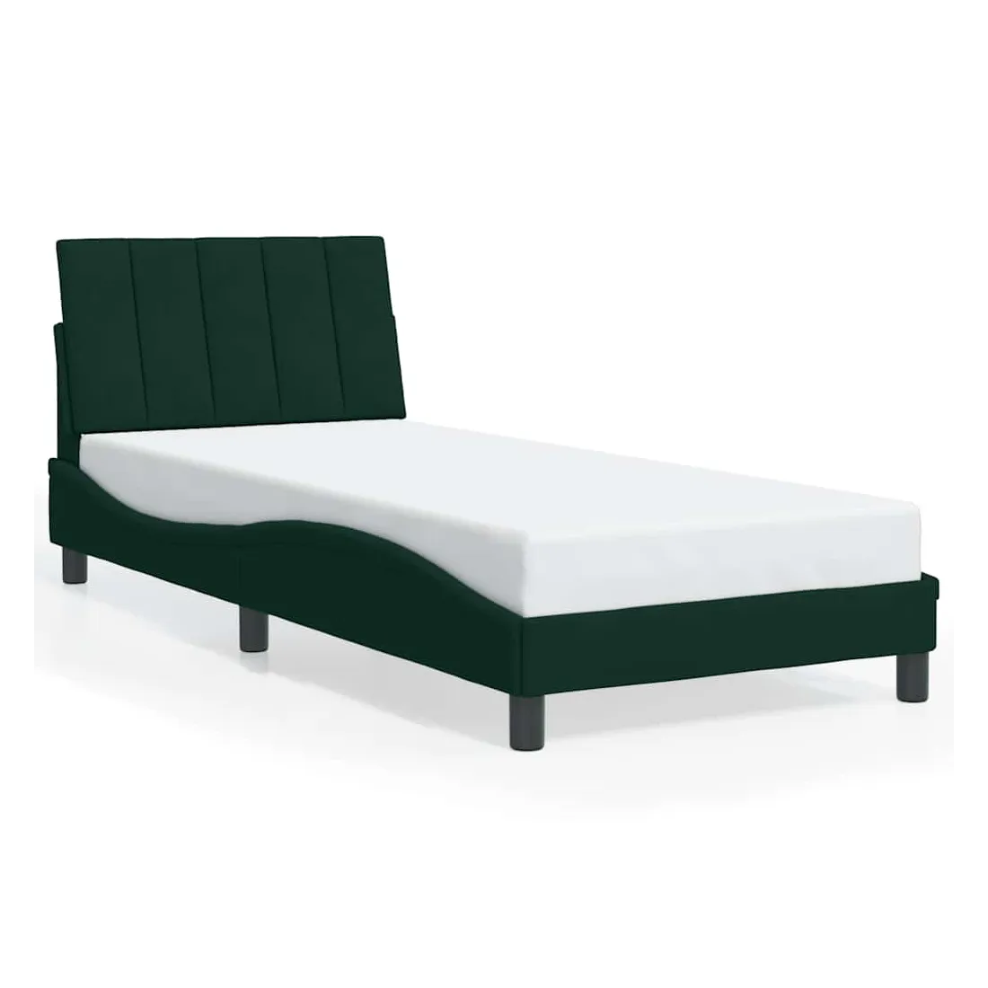Obtenez une meilleure nuit de sommeil reposante grâce à ce cadre de lit avec tête de lit ! Il est un supplément accueillant à toute chambre à coucher. Velours doux : le velours est un tissu doux et confortable, agréable au toucher.Lattes de contreplaqué : les lattes de contreplaqué assurent une bonne répartition du poids, garantissant que le matelas reste en place à chaque torsion de votre corps pendant le sommeil.Excellent soutien : l'oreiller de tête de lit est rembourré avec de la mousse pour un confort ultra doux et optimal vous offre un excellent soutien du dos lorsque vous êtes assis dans votre lit pour lire ou regarder la télévision.Design pratique : le coussin de la tête de lit est doté d'une fermeture à glissière pour faciliter l'installation, et les bandes auto-agrippantes au dos peuvent être utilisées pour fixer les lampes LED.Design latéral ondulé : l’aspect ondulé du cadre de lit est élégant et sophistiqué, ajoutant une touche moderne et élégante à votre décor, ce qui en fait le point central de votre chambre à coucher. Bon à savoir :Un matelas n'est pas inclus avec ce lit. Nous offrons une sélection variée de matelas. Vous pouvez consulter notre boutique pour trouver un matelas assorti.