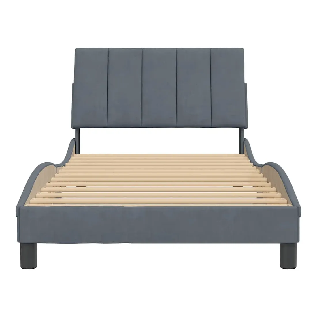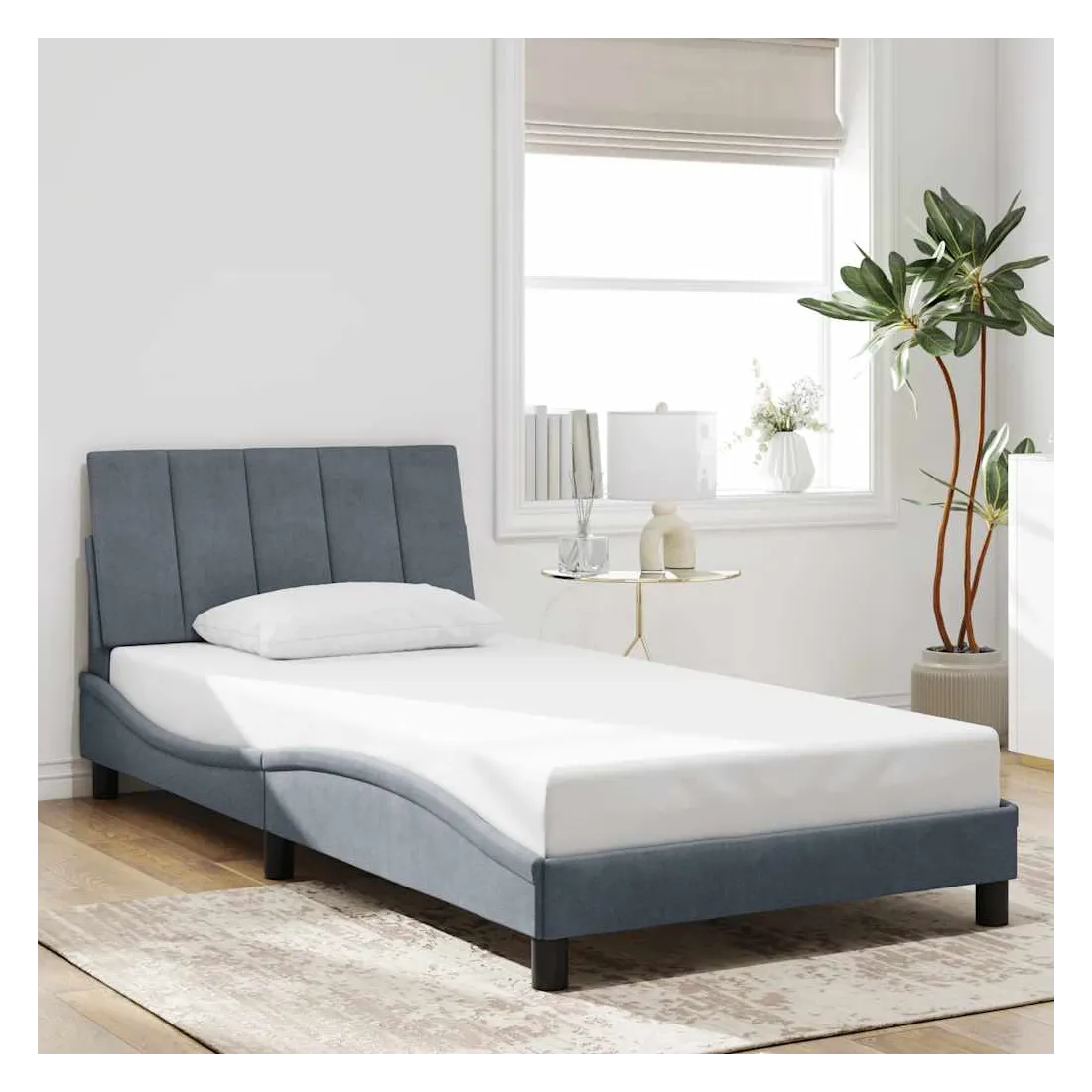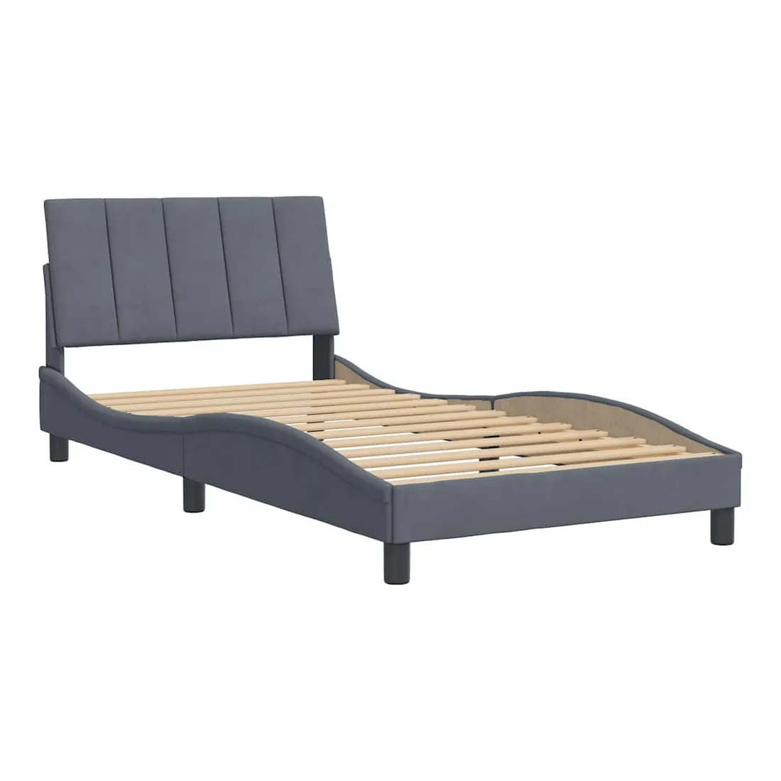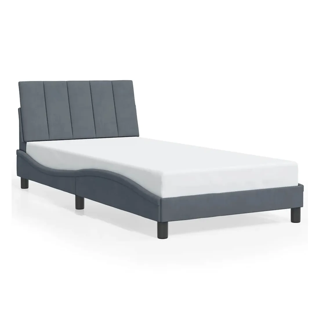 Obtenez une meilleure nuit de sommeil reposante grâce à ce cadre de lit avec tête de lit ! Il est un supplément accueillant à toute chambre à coucher. Velours doux : le velours est un tissu doux et confortable, agréable au toucher.Lattes de contreplaqué : les lattes de contreplaqué assurent une bonne répartition du poids, garantissant que le matelas reste en place à chaque torsion de votre corps pendant le sommeil.Excellent soutien : l'oreiller de tête de lit est rembourré avec de la mousse pour un confort ultra doux et optimal vous offre un excellent soutien du dos lorsque vous êtes assis dans votre lit pour lire ou regarder la télévision.Design pratique : le coussin de la tête de lit est doté d'une fermeture à glissière pour faciliter l'installation, et les bandes auto-agrippantes au dos peuvent être utilisées pour fixer les lampes LED.Design latéral ondulé : l’aspect ondulé du cadre de lit est élégant et sophistiqué, ajoutant une touche moderne et élégante à votre décor, ce qui en fait le point central de votre chambre à coucher. Bon à savoir :Un matelas n'est pas inclus avec ce lit. Nous offrons une sélection variée de matelas. Vous pouvez consulter notre boutique pour trouver un matelas assorti.