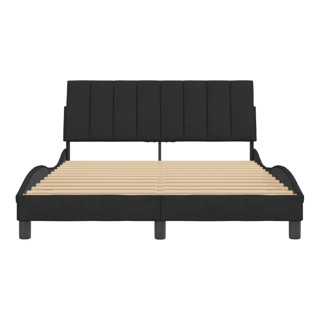 Obtenez une meilleure nuit de sommeil reposante grâce à ce cadre de lit avec tête de lit ! Il est un supplément accueillant à toute chambre à coucher. Velours doux : le velours est un tissu doux et confortable, agréable au toucher.Lattes de contreplaqué : les lattes de contreplaqué assurent une bonne répartition du poids, garantissant que le matelas reste en place à chaque torsion de votre corps pendant le sommeil.Excellent soutien : l'oreiller de tête de lit est rembourré avec de la mousse pour un confort ultra doux et optimal vous offre un excellent soutien du dos lorsque vous êtes assis dans votre lit pour lire ou regarder la télévision.Design pratique : le coussin de la tête de lit est doté d'une fermeture à glissière pour faciliter l'installation, et les bandes auto-agrippantes au dos peuvent être utilisées pour fixer les lampes LED.Design latéral ondulé : l’aspect ondulé du cadre de lit est élégant et sophistiqué, ajoutant une touche moderne et élégante à votre décor, ce qui en fait le point central de votre chambre à coucher. Bon à savoir :Un matelas n'est pas inclus avec ce lit. Nous offrons une sélection variée de matelas. Vous pouvez consulter notre boutique pour trouver un matelas assorti.