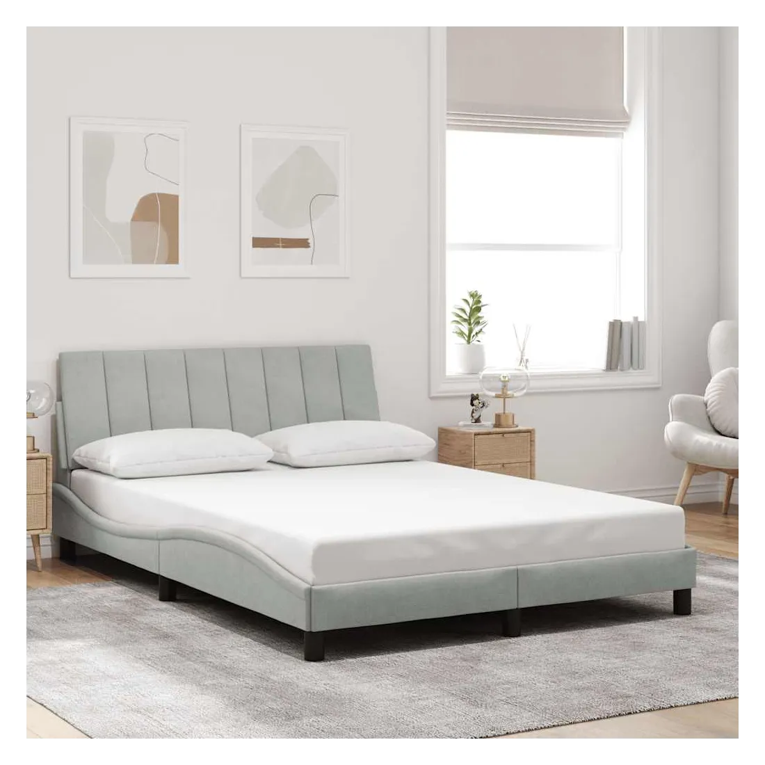 Obtenez une meilleure nuit de sommeil reposante grâce à ce cadre de lit avec tête de lit ! Il est un supplément accueillant à toute chambre à coucher. Velours doux : le velours est un tissu doux et confortable, agréable au toucher.Lattes de contreplaqué : les lattes de contreplaqué assurent une bonne répartition du poids, garantissant que le matelas reste en place à chaque torsion de votre corps pendant le sommeil.Excellent soutien : l'oreiller de tête de lit est rembourré avec de la mousse pour un confort ultra doux et optimal vous offre un excellent soutien du dos lorsque vous êtes assis dans votre lit pour lire ou regarder la télévision.Design pratique : le coussin de la tête de lit est doté d'une fermeture à glissière pour faciliter l'installation, et les bandes auto-agrippantes au dos peuvent être utilisées pour fixer les lampes LED.Design latéral ondulé : l’aspect ondulé du cadre de lit est élégant et sophistiqué, ajoutant une touche moderne et élégante à votre décor, ce qui en fait le point central de votre chambre à coucher. Bon à savoir :Un matelas n'est pas inclus avec ce lit. Nous offrons une sélection variée de matelas. Vous pouvez consulter notre boutique pour trouver un matelas assorti.