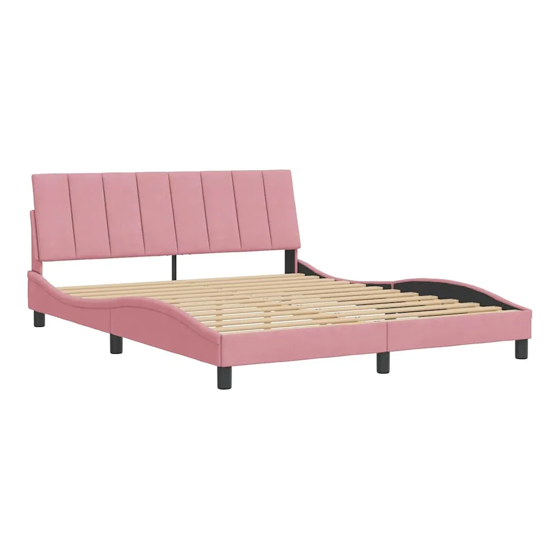 Obtenez une meilleure nuit de sommeil reposante grâce à ce cadre de lit avec tête de lit ! Il est un supplément accueillant à toute chambre à coucher. Velours doux : le velours est un tissu doux et confortable, agréable au toucher.Lattes de contreplaqué : les lattes de contreplaqué assurent une bonne répartition du poids, garantissant que le matelas reste en place à chaque torsion de votre corps pendant le sommeil.Excellent soutien : l'oreiller de tête de lit est rembourré avec de la mousse pour un confort ultra doux et optimal vous offre un excellent soutien du dos lorsque vous êtes assis dans votre lit pour lire ou regarder la télévision.Design pratique : le coussin de la tête de lit est doté d'une fermeture à glissière pour faciliter l'installation, et les bandes auto-agrippantes au dos peuvent être utilisées pour fixer les lampes LED.Design latéral ondulé : l’aspect ondulé du cadre de lit est élégant et sophistiqué, ajoutant une touche moderne et élégante à votre décor, ce qui en fait le point central de votre chambre à coucher. Bon à savoir :Un matelas n'est pas inclus avec ce lit. Nous offrons une sélection variée de matelas. Vous pouvez consulter notre boutique pour trouver un matelas assorti.