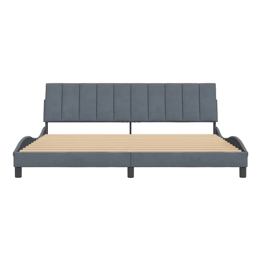 Obtenez une meilleure nuit de sommeil reposante grâce à ce cadre de lit avec tête de lit ! Il est un supplément accueillant à toute chambre à coucher. Velours doux : le velours est un tissu doux et confortable, agréable au toucher.Lattes de contreplaqué : les lattes de contreplaqué assurent une bonne répartition du poids, garantissant que le matelas reste en place à chaque torsion de votre corps pendant le sommeil.Excellent soutien : l'oreiller de tête de lit est rembourré avec de la mousse pour un confort ultra doux et optimal vous offre un excellent soutien du dos lorsque vous êtes assis dans votre lit pour lire ou regarder la télévision.Design pratique : le coussin de la tête de lit est doté d'une fermeture à glissière pour faciliter l'installation, et les bandes auto-agrippantes au dos peuvent être utilisées pour fixer les lampes LED.Design latéral ondulé : l’aspect ondulé du cadre de lit est élégant et sophistiqué, ajoutant une touche moderne et élégante à votre décor, ce qui en fait le point central de votre chambre à coucher. Bon à savoir :Un matelas n'est pas inclus avec ce lit. Nous offrons une sélection variée de matelas. Vous pouvez consulter notre boutique pour trouver un matelas assorti.