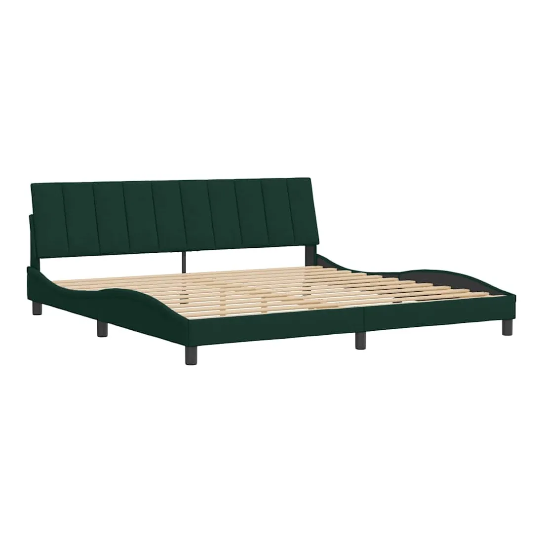 Obtenez une meilleure nuit de sommeil reposante grâce à ce cadre de lit avec tête de lit ! Il est un supplément accueillant à toute chambre à coucher. Velours doux : le velours est un tissu doux et confortable, agréable au toucher.Lattes de contreplaqué : les lattes de contreplaqué assurent une bonne répartition du poids, garantissant que le matelas reste en place à chaque torsion de votre corps pendant le sommeil.Excellent soutien : l'oreiller de tête de lit est rembourré avec de la mousse pour un confort ultra doux et optimal vous offre un excellent soutien du dos lorsque vous êtes assis dans votre lit pour lire ou regarder la télévision.Design pratique : le coussin de la tête de lit est doté d'une fermeture à glissière pour faciliter l'installation, et les bandes auto-agrippantes au dos peuvent être utilisées pour fixer les lampes LED.Design latéral ondulé : l’aspect ondulé du cadre de lit est élégant et sophistiqué, ajoutant une touche moderne et élégante à votre décor, ce qui en fait le point central de votre chambre à coucher. Bon à savoir :Un matelas n'est pas inclus avec ce lit. Nous offrons une sélection variée de matelas. Vous pouvez consulter notre boutique pour trouver un matelas assorti.