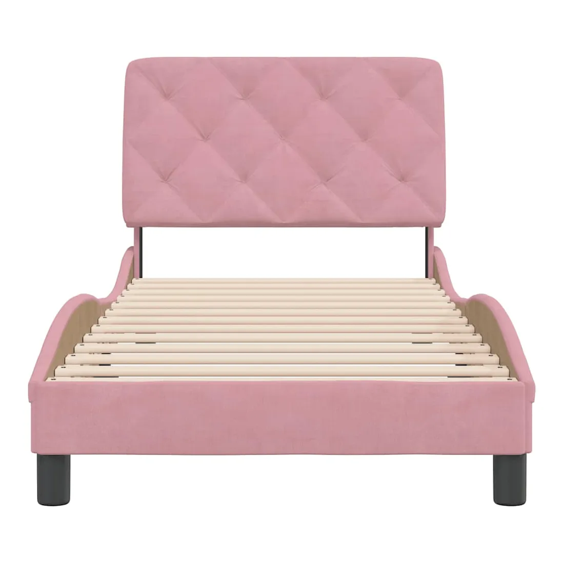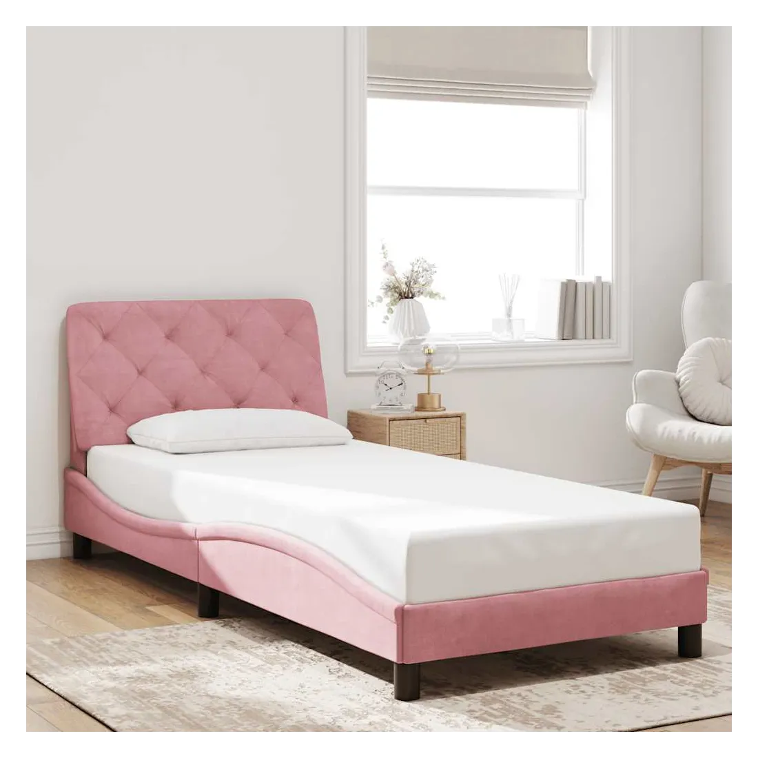 Obtenez une meilleure nuit de sommeil reposante grâce à ce cadre de lit avec tête de lit ! Il est un supplément accueillant à toute chambre à coucher. Velours doux : le velours est un tissu doux et confortable, agréable au toucher.Lattes de contreplaqué : les lattes de contreplaqué assurent une bonne répartition du poids, garantissant que le matelas reste en place à chaque torsion de votre corps pendant le sommeil.Excellent soutien : l'oreiller de tête de lit est rembourré avec de la mousse pour un confort ultra doux et optimal vous offre un excellent soutien du dos lorsque vous êtes assis dans votre lit pour lire ou regarder la télévision.Design pratique : le coussin de la tête de lit est doté d'une fermeture à glissière pour faciliter l'installation, et les bandes auto-agrippantes au dos peuvent être utilisées pour fixer les lampes LED.Design latéral ondulé : l’aspect ondulé du cadre de lit est élégant et sophistiqué, ajoutant une touche moderne et élégante à votre décor, ce qui en fait le point central de votre chambre à coucher. Bon à savoir :Un matelas n'est pas inclus avec ce lit. Nous offrons une sélection variée de matelas. Vous pouvez consulter notre boutique pour trouver un matelas assorti.
