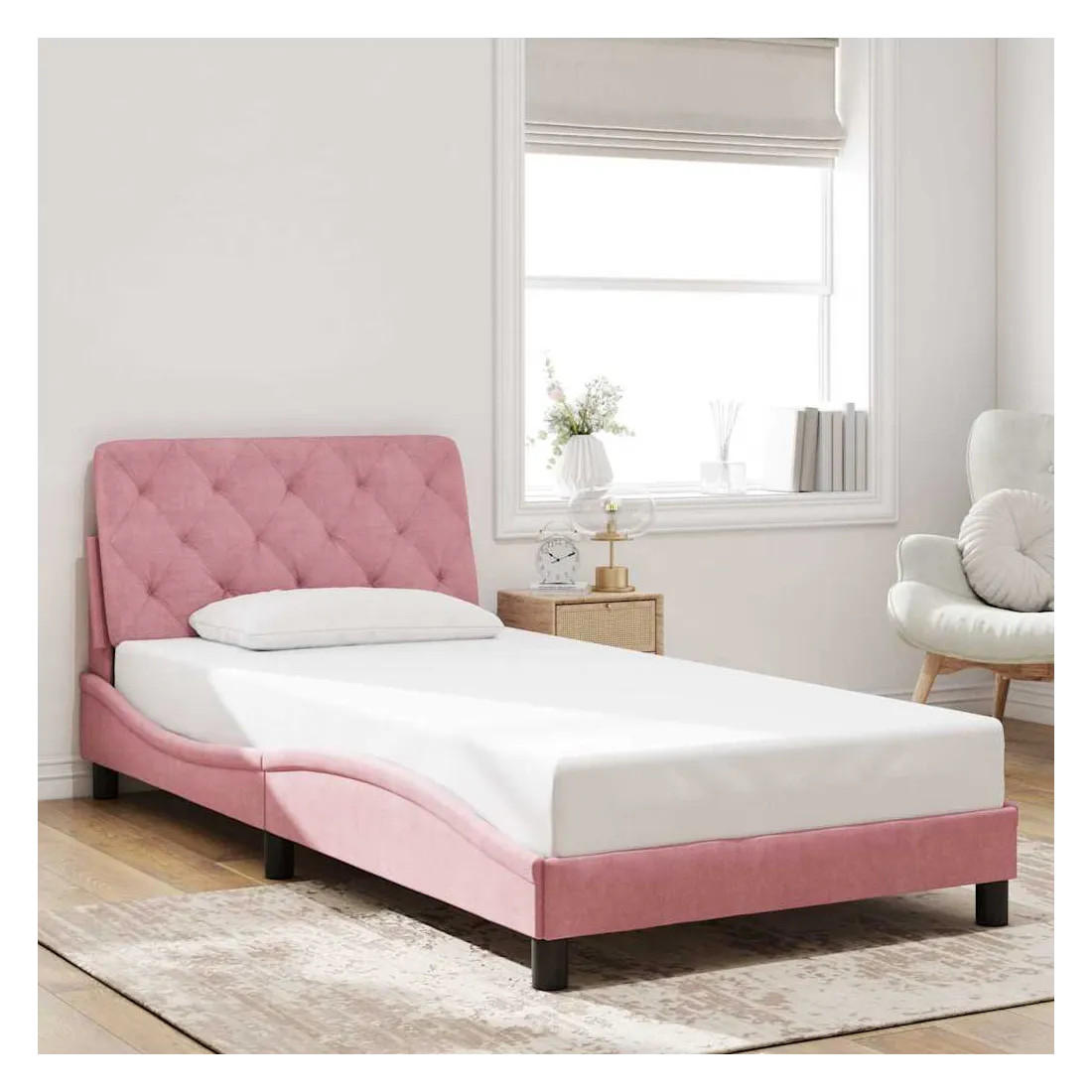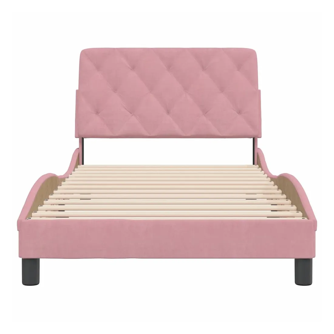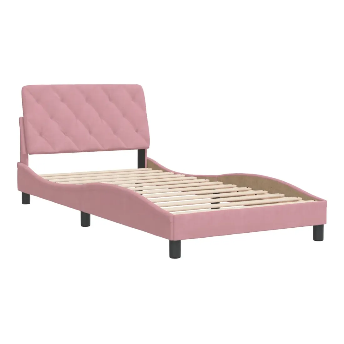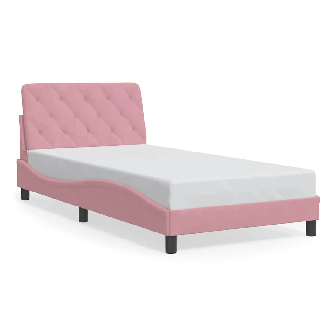 Obtenez une meilleure nuit de sommeil reposante grâce à ce cadre de lit avec tête de lit ! Il est un supplément accueillant à toute chambre à coucher. Velours doux : le velours est un tissu doux et confortable, agréable au toucher.Lattes de contreplaqué : les lattes de contreplaqué assurent une bonne répartition du poids, garantissant que le matelas reste en place à chaque torsion de votre corps pendant le sommeil.Excellent soutien : l'oreiller de tête de lit est rembourré avec de la mousse pour un confort ultra doux et optimal vous offre un excellent soutien du dos lorsque vous êtes assis dans votre lit pour lire ou regarder la télévision.Design pratique : le coussin de la tête de lit est doté d'une fermeture à glissière pour faciliter l'installation, et les bandes auto-agrippantes au dos peuvent être utilisées pour fixer les lampes LED.Design latéral ondulé : l’aspect ondulé du cadre de lit est élégant et sophistiqué, ajoutant une touche moderne et élégante à votre décor, ce qui en fait le point central de votre chambre à coucher. Bon à savoir :Un matelas n'est pas inclus avec ce lit. Nous offrons une sélection variée de matelas. Vous pouvez consulter notre boutique pour trouver un matelas assorti.