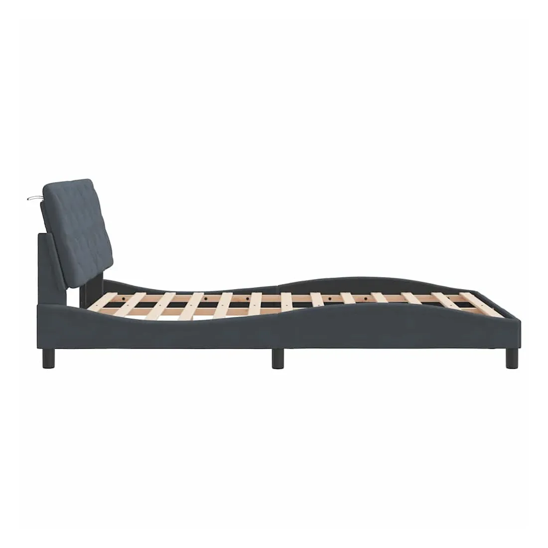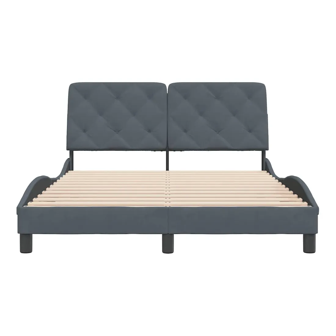 Obtenez une meilleure nuit de sommeil reposante grâce à ce cadre de lit avec tête de lit ! Il est un supplément accueillant à toute chambre à coucher. Velours doux : le velours est un tissu doux et confortable, agréable au toucher.Lattes de contreplaqué : les lattes de contreplaqué assurent une bonne répartition du poids, garantissant que le matelas reste en place à chaque torsion de votre corps pendant le sommeil.Excellent soutien : l'oreiller de tête de lit est rembourré avec de la mousse pour un confort ultra doux et optimal vous offre un excellent soutien du dos lorsque vous êtes assis dans votre lit pour lire ou regarder la télévision.Design pratique : le coussin de la tête de lit est doté d'une fermeture à glissière pour faciliter l'installation, et les bandes auto-agrippantes au dos peuvent être utilisées pour fixer les lampes LED.Design latéral ondulé : l’aspect ondulé du cadre de lit est élégant et sophistiqué, ajoutant une touche moderne et élégante à votre décor, ce qui en fait le point central de votre chambre à coucher. Bon à savoir :Un matelas n'est pas inclus avec ce lit. Nous offrons une sélection variée de matelas. Vous pouvez consulter notre boutique pour trouver un matelas assorti.
