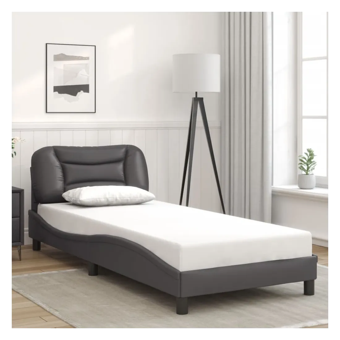 Obtenez une meilleure nuit de sommeil reposante grâce à ce cadre de lit avec tête de lit ! Il est un supplément accueillant à toute chambre à coucher. Similicuir durable : le similicuir de qualité supérieure est un matériau très durable. Il est résistant aux taches, ce qui le rend facile à nettoyer avec un chiffon humide. La surface lisse donne également un aspect luxueux et la beauté du cuir véritable.Lattes de contreplaqué : les lattes de contreplaqué assurent une bonne répartition du poids, garantissant que le matelas reste en place à chaque torsion de votre corps pendant le sommeil.Excellent soutien : l'oreiller de tête de lit est rembourré avec de la fibre de polypropylène pour un confort ultra doux et optimal vous offre un excellent soutien du dos lorsque vous êtes assis dans votre lit pour lire ou regarder la télévision.Design latéral ondulé : l’aspect ondulé du cadre de lit est élégant et sophistiqué, ajoutant une touche moderne et élégante à votre décor, ce qui en fait le point central de votre chambre à coucher. Bon à savoir :Un matelas n'est pas inclus avec ce lit. Nous offrons une sélection variée de matelas. Vous pouvez consulter notre boutique pour trouver un matelas assorti.