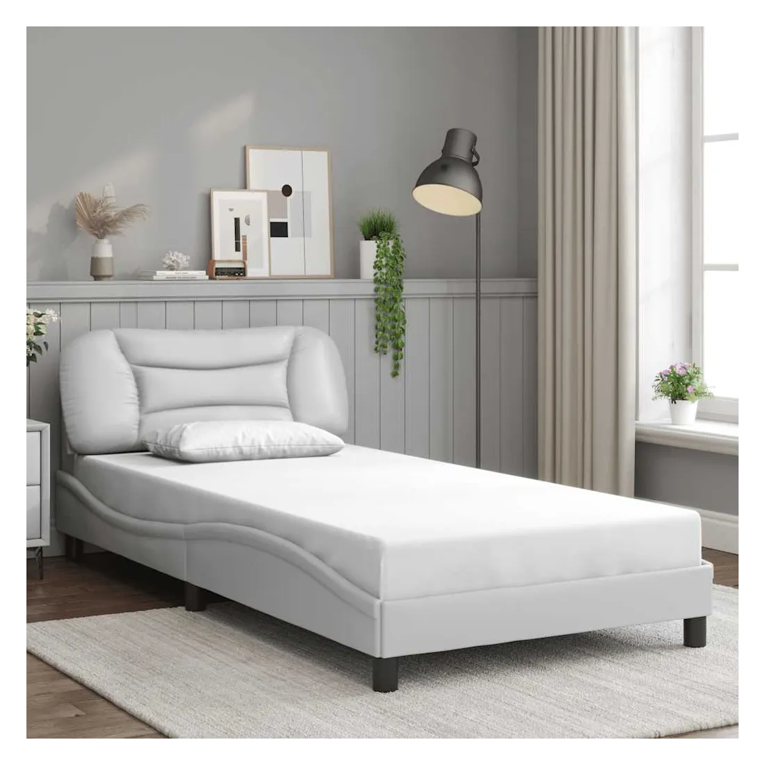 Obtenez une meilleure nuit de sommeil reposante grâce à ce cadre de lit avec tête de lit ! Il est un supplément accueillant à toute chambre à coucher. Similicuir durable : le similicuir de qualité supérieure est un matériau très durable. Il est résistant aux taches, ce qui le rend facile à nettoyer avec un chiffon humide. La surface lisse donne également un aspect luxueux et la beauté du cuir véritable.Lattes de contreplaqué : les lattes de contreplaqué assurent une bonne répartition du poids, garantissant que le matelas reste en place à chaque torsion de votre corps pendant le sommeil.Excellent soutien : l'oreiller de tête de lit est rembourré avec de la fibre de polypropylène pour un confort ultra doux et optimal vous offre un excellent soutien du dos lorsque vous êtes assis dans votre lit pour lire ou regarder la télévision.Design latéral ondulé : l’aspect ondulé du cadre de lit est élégant et sophistiqué, ajoutant une touche moderne et élégante à votre décor, ce qui en fait le point central de votre chambre à coucher. Bon à savoir :Un matelas n'est pas inclus avec ce lit. Nous offrons une sélection variée de matelas. Vous pouvez consulter notre boutique pour trouver un matelas assorti.