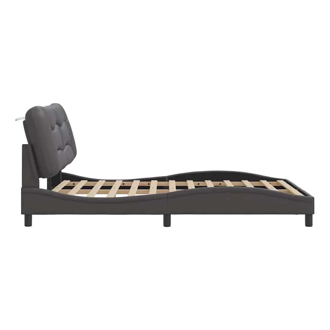 Obtenez une meilleure nuit de sommeil reposante grâce à ce cadre de lit avec tête de lit ! Il est un supplément accueillant à toute chambre à coucher. Similicuir durable : le similicuir de qualité supérieure est un matériau très durable. Il est résistant aux taches, ce qui le rend facile à nettoyer avec un chiffon humide. La surface lisse donne également un aspect luxueux et la beauté du cuir véritable.Lattes de contreplaqué : les lattes de contreplaqué assurent une bonne répartition du poids, garantissant que le matelas reste en place à chaque torsion de votre corps pendant le sommeil.Excellent soutien : l'oreiller de tête de lit est rembourré avec de la fibre de polypropylène pour un confort ultra doux et optimal vous offre un excellent soutien du dos lorsque vous êtes assis dans votre lit pour lire ou regarder la télévision.Design latéral ondulé : l’aspect ondulé du cadre de lit est élégant et sophistiqué, ajoutant une touche moderne et élégante à votre décor, ce qui en fait le point central de votre chambre à coucher. Bon à savoir :Un matelas n'est pas inclus avec ce lit. Nous offrons une sélection variée de matelas. Vous pouvez consulter notre boutique pour trouver un matelas assorti.