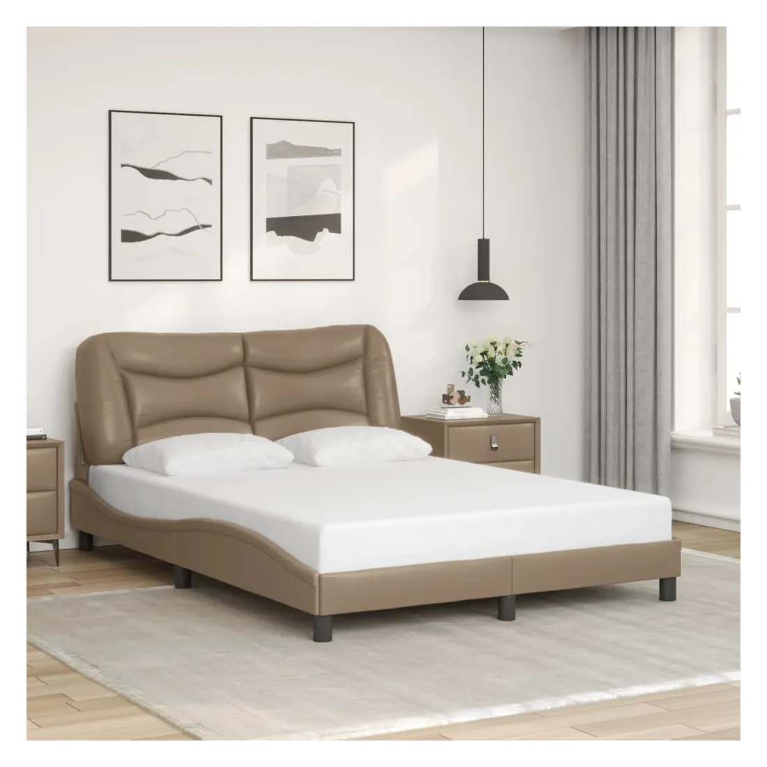 Obtenez une meilleure nuit de sommeil reposante grâce à ce cadre de lit avec tête de lit ! Il est un supplément accueillant à toute chambre à coucher. Similicuir durable : le similicuir de qualité supérieure est un matériau très durable. Il est résistant aux taches, ce qui le rend facile à nettoyer avec un chiffon humide. La surface lisse donne également un aspect luxueux et la beauté du cuir véritable.Lattes de contreplaqué : les lattes de contreplaqué assurent une bonne répartition du poids, garantissant que le matelas reste en place à chaque torsion de votre corps pendant le sommeil.Excellent soutien : l'oreiller de tête de lit est rembourré avec de la fibre de polypropylène pour un confort ultra doux et optimal vous offre un excellent soutien du dos lorsque vous êtes assis dans votre lit pour lire ou regarder la télévision.Design latéral ondulé : l’aspect ondulé du cadre de lit est élégant et sophistiqué, ajoutant une touche moderne et élégante à votre décor, ce qui en fait le point central de votre chambre à coucher. Bon à savoir :Un matelas n'est pas inclus avec ce lit. Nous offrons une sélection variée de matelas. Vous pouvez consulter notre boutique pour trouver un matelas assorti.