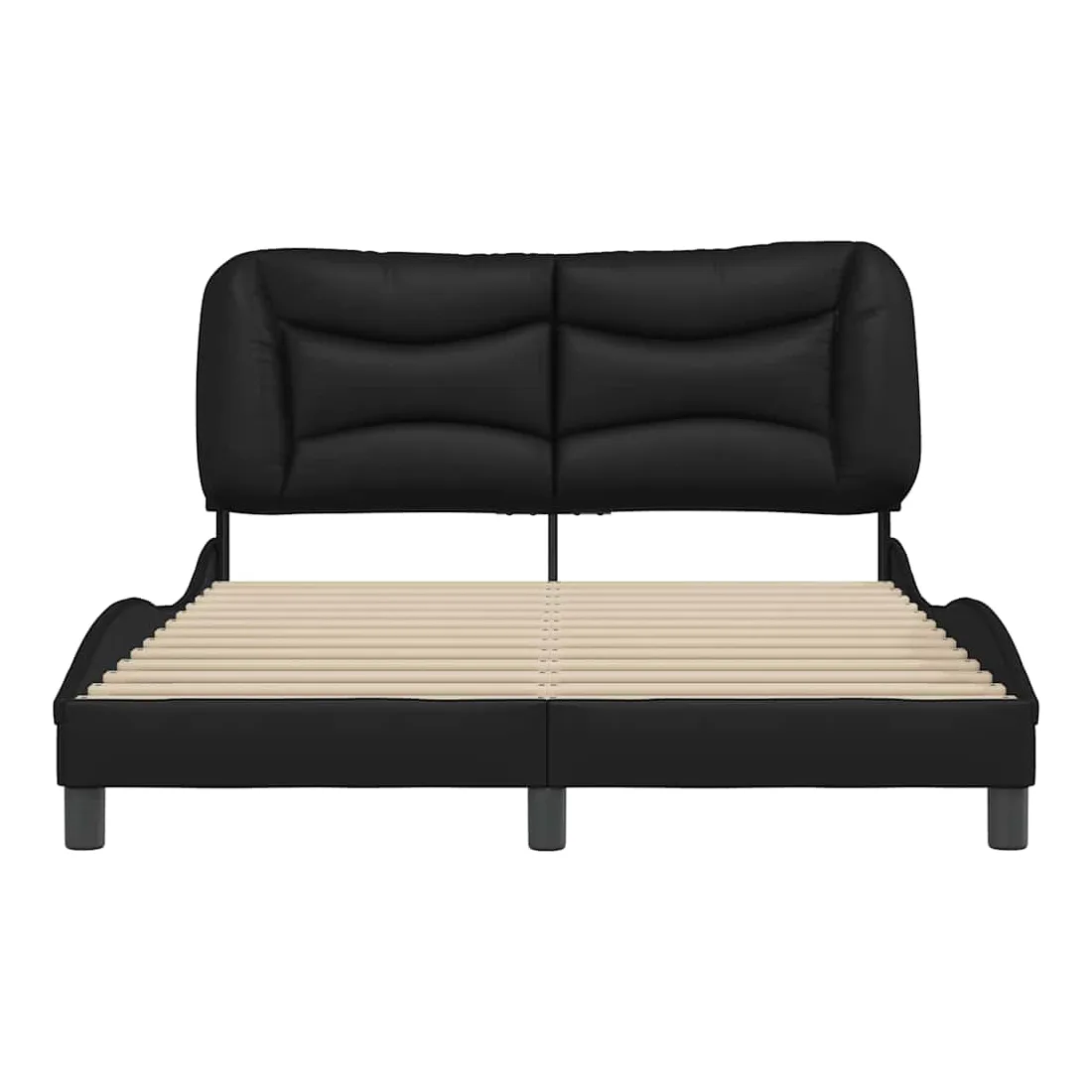 Obtenez une meilleure nuit de sommeil reposante grâce à ce cadre de lit avec tête de lit ! Il est un supplément accueillant à toute chambre à coucher. Similicuir durable : le similicuir de qualité supérieure est un matériau très durable. Il est résistant aux taches, ce qui le rend facile à nettoyer avec un chiffon humide. La surface lisse donne également un aspect luxueux et la beauté du cuir véritable.Lattes de contreplaqué : les lattes de contreplaqué assurent une bonne répartition du poids, garantissant que le matelas reste en place à chaque torsion de votre corps pendant le sommeil.Excellent soutien : l'oreiller de tête de lit est rembourré avec de la fibre de polypropylène pour un confort ultra doux et optimal vous offre un excellent soutien du dos lorsque vous êtes assis dans votre lit pour lire ou regarder la télévision.Design latéral ondulé : l’aspect ondulé du cadre de lit est élégant et sophistiqué, ajoutant une touche moderne et élégante à votre décor, ce qui en fait le point central de votre chambre à coucher. Bon à savoir :Un matelas n'est pas inclus avec ce lit. Nous offrons une sélection variée de matelas. Vous pouvez consulter notre boutique pour trouver un matelas assorti.