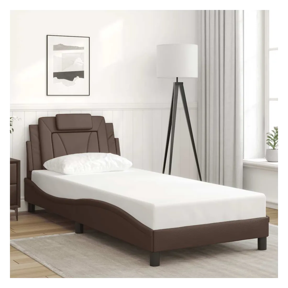 Obtenez une meilleure nuit de sommeil reposante grâce à ce cadre de lit avec tête de lit ! Il est un supplément accueillant à toute chambre à coucher. Similicuir durable : le similicuir de qualité supérieure est un matériau très durable. Il est résistant aux taches, ce qui le rend facile à nettoyer avec un chiffon humide. La surface lisse donne également un aspect luxueux et la beauté du cuir véritable.Lattes de contreplaqué : les lattes de contreplaqué assurent une bonne répartition du poids, garantissant que le matelas reste en place à chaque torsion de votre corps pendant le sommeil.Excellent soutien : l'oreiller de tête de lit est rembourré avec de la mousse pour un confort ultra doux et optimal vous offre un excellent soutien du dos lorsque vous êtes assis dans votre lit pour lire ou regarder la télévision.Design latéral ondulé : l’aspect ondulé du cadre de lit est élégant et sophistiqué, ajoutant une touche moderne et élégante à votre décor, ce qui en fait le point central de votre chambre à coucher. Bon à savoir :Un matelas n'est pas inclus avec ce lit. Nous offrons une sélection variée de matelas. Vous pouvez consulter notre boutique pour trouver un matelas assorti.