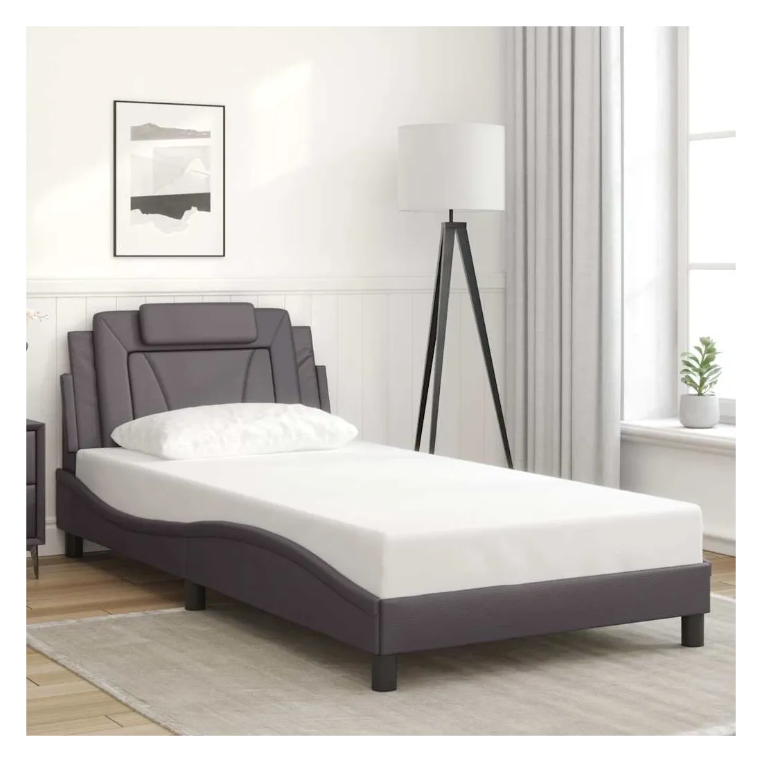 Obtenez une meilleure nuit de sommeil reposante grâce à ce cadre de lit avec tête de lit ! Il est un supplément accueillant à toute chambre à coucher. Similicuir durable : le similicuir de qualité supérieure est un matériau très durable. Il est résistant aux taches, ce qui le rend facile à nettoyer avec un chiffon humide. La surface lisse donne également un aspect luxueux et la beauté du cuir véritable.Lattes de contreplaqué : les lattes de contreplaqué assurent une bonne répartition du poids, garantissant que le matelas reste en place à chaque torsion de votre corps pendant le sommeil.Excellent soutien : l'oreiller de tête de lit est rembourré avec de la mousse pour un confort ultra doux et optimal vous offre un excellent soutien du dos lorsque vous êtes assis dans votre lit pour lire ou regarder la télévision.Design latéral ondulé : l’aspect ondulé du cadre de lit est élégant et sophistiqué, ajoutant une touche moderne et élégante à votre décor, ce qui en fait le point central de votre chambre à coucher. Bon à savoir :Un matelas n'est pas inclus avec ce lit. Nous offrons une sélection variée de matelas. Vous pouvez consulter notre boutique pour trouver un matelas assorti.