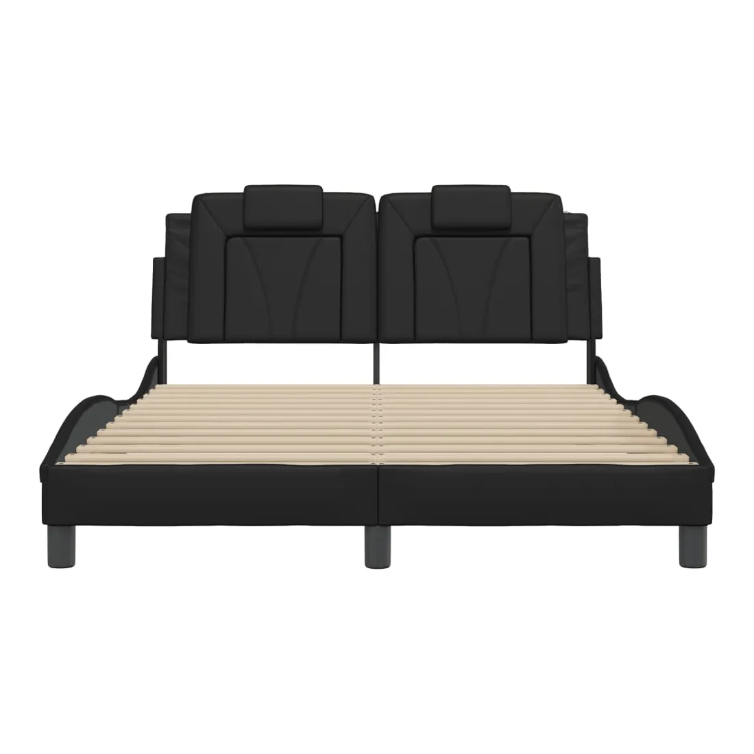 Obtenez une meilleure nuit de sommeil reposante grâce à ce cadre de lit avec tête de lit ! Il est un supplément accueillant à toute chambre à coucher. Similicuir durable : le similicuir de qualité supérieure est un matériau très durable. Il est résistant aux taches, ce qui le rend facile à nettoyer avec un chiffon humide. La surface lisse donne également un aspect luxueux et la beauté du cuir véritable.Lattes de contreplaqué : les lattes de contreplaqué assurent une bonne répartition du poids, garantissant que le matelas reste en place à chaque torsion de votre corps pendant le sommeil.Excellent soutien : l'oreiller de tête de lit est rembourré avec de la mousse pour un confort ultra doux et optimal vous offre un excellent soutien du dos lorsque vous êtes assis dans votre lit pour lire ou regarder la télévision.Design latéral ondulé : l’aspect ondulé du cadre de lit est élégant et sophistiqué, ajoutant une touche moderne et élégante à votre décor, ce qui en fait le point central de votre chambre à coucher. Bon à savoir :Un matelas n'est pas inclus avec ce lit. Nous offrons une sélection variée de matelas. Vous pouvez consulter notre boutique pour trouver un matelas assorti.