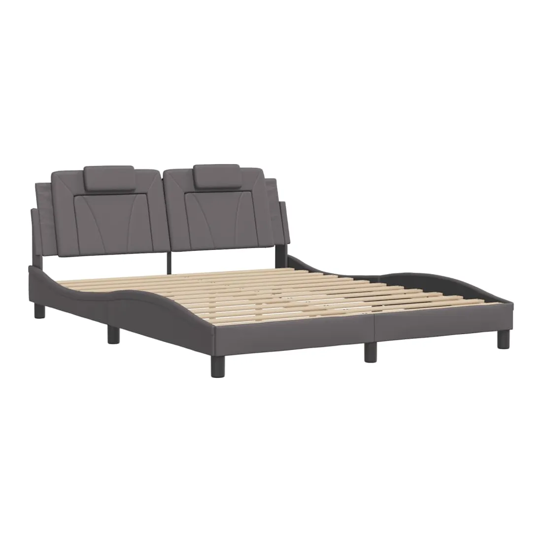 Obtenez une meilleure nuit de sommeil reposante grâce à ce cadre de lit avec tête de lit ! Il est un supplément accueillant à toute chambre à coucher. Similicuir durable : le similicuir de qualité supérieure est un matériau très durable. Il est résistant aux taches, ce qui le rend facile à nettoyer avec un chiffon humide. La surface lisse donne également un aspect luxueux et la beauté du cuir véritable.Lattes de contreplaqué : les lattes de contreplaqué assurent une bonne répartition du poids, garantissant que le matelas reste en place à chaque torsion de votre corps pendant le sommeil.Excellent soutien : l'oreiller de tête de lit est rembourré avec de la mousse pour un confort ultra doux et optimal vous offre un excellent soutien du dos lorsque vous êtes assis dans votre lit pour lire ou regarder la télévision.Design latéral ondulé : l’aspect ondulé du cadre de lit est élégant et sophistiqué, ajoutant une touche moderne et élégante à votre décor, ce qui en fait le point central de votre chambre à coucher. Bon à savoir :Un matelas n'est pas inclus avec ce lit. Nous offrons une sélection variée de matelas. Vous pouvez consulter notre boutique pour trouver un matelas assorti.