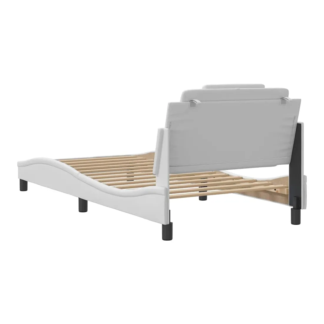 Obtenez une meilleure nuit de sommeil reposante grâce à ce cadre de lit avec tête de lit ! Il est un supplément accueillant à toute chambre à coucher. Similicuir durable : le similicuir de qualité supérieure est un matériau très durable. Il est résistant aux taches, ce qui le rend facile à nettoyer avec un chiffon humide. La surface lisse donne également un aspect luxueux et la beauté du cuir véritable.Lattes de contreplaqué : les lattes de contreplaqué assurent une bonne répartition du poids, garantissant que le matelas reste en place à chaque torsion de votre corps pendant le sommeil.Excellent soutien : l'oreiller de tête de lit est rembourré avec de la mousse pour un confort ultra doux et optimal vous offre un excellent soutien du dos lorsque vous êtes assis dans votre lit pour lire ou regarder la télévision.Design pratique : le coussin de la tête de lit est doté d'une fermeture à glissière pour faciliter l'installation, et les bandes auto-agrippantes au dos peuvent être utilisées pour fixer les lampes LED.Design latéral ondulé : l’aspect ondulé du cadre de lit est élégant et sophistiqué, ajoutant une touche moderne et élégante à votre décor, ce qui en fait le point central de votre chambre à coucher. Bon à savoir :Un matelas n'est pas inclus avec ce lit. Nous offrons une sélection variée de matelas. Vous pouvez consulter notre boutique pour trouver un matelas assorti.
