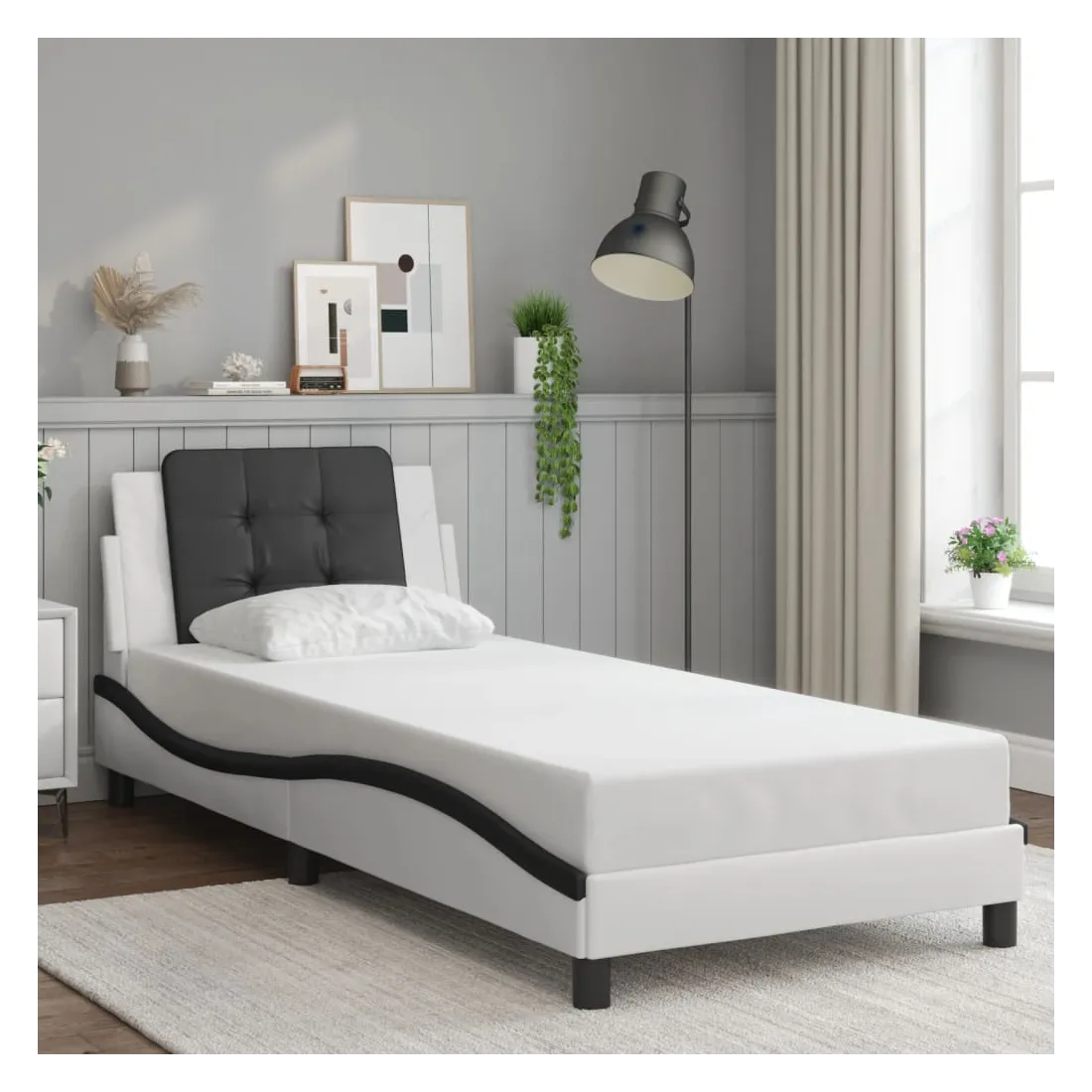 Cadre de lit sans matelas Zadar blanc et noir 90x190 cm similicuir