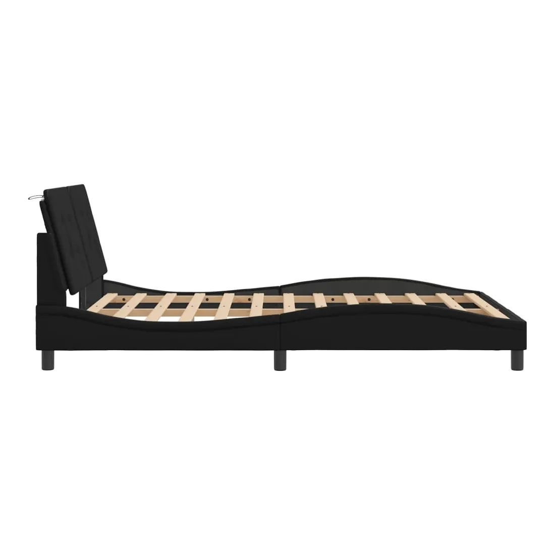 Obtenez une meilleure nuit de sommeil reposante grâce à ce cadre de lit avec tête de lit ! Il est un supplément accueillant à toute chambre à coucher. Similicuir durable : le similicuir de qualité supérieure est un matériau très durable. Il est résistant aux taches, ce qui le rend facile à nettoyer avec un chiffon humide. La surface lisse donne également un aspect luxueux et la beauté du cuir véritable.Lattes de contreplaqué : les lattes de contreplaqué assurent une bonne répartition du poids, garantissant que le matelas reste en place à chaque torsion de votre corps pendant le sommeil.Excellent soutien : l'oreiller de tête de lit est rembourré avec de la mousse pour un confort ultra doux et optimal vous offre un excellent soutien du dos lorsque vous êtes assis dans votre lit pour lire ou regarder la télévision.Design pratique : le coussin de tête de lit est doté d'une fermeture éclair pour une installation facile.Design latéral ondulé : l’aspect ondulé du cadre de lit est élégant et sophistiqué, ajoutant une touche moderne et élégante à votre décor, ce qui en fait le point central de votre chambre à coucher. Bon à savoir :Un matelas n'est pas inclus avec ce lit. Nous offrons une sélection variée de matelas. Vous pouvez consulter notre boutique pour trouver un matelas assorti.