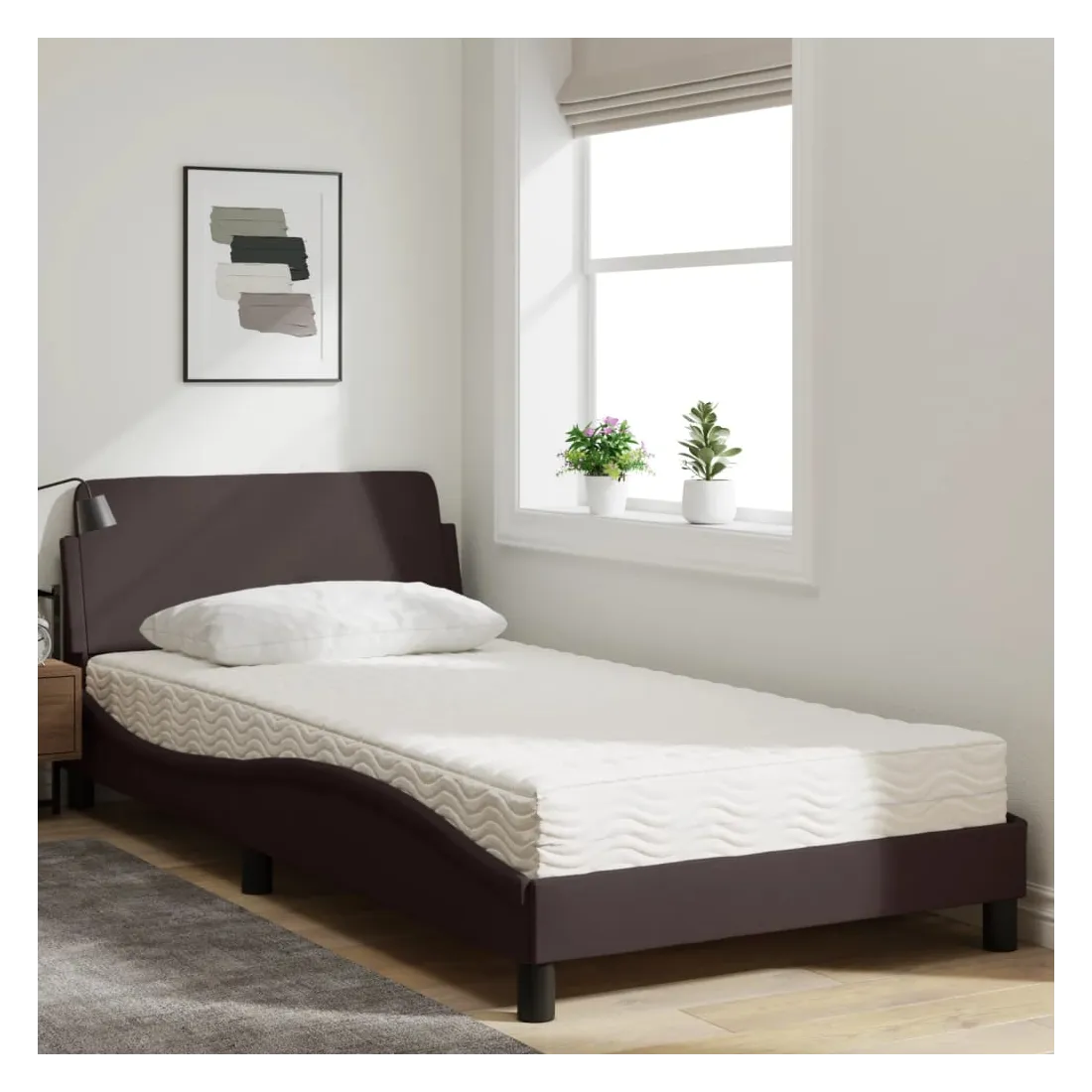 Obtenez une meilleure nuit de sommeil reposante grâce à ce lit avec matelas ! Il est un supplément accueillant à toute chambre à coucher. Tissu durable : le tissu présente un aspect simple et épuré, et il est respirant et durable.Lattes de contreplaqué : les lattes de contreplaqué assurent une bonne répartition du poids, garantissant que le matelas reste en place à chaque torsion de votre corps pendant le sommeil.Excellent soutien : la tête de lit vous offre un excellent soutien du dos lorsque vous êtes assis dans votre lit pour lire ou regarder la télévision.Matelas en mousse : ce matelas de lit en tissu à 3 couches est rempli de mousse PU 22D pour un confort optimal. Il contribue à soulager la fatigue et à favoriser la circulation sanguine, vous offrant ainsi une relaxation complète et une bonne qualité de sommeil. En outre, le matelas est disponible en dureté H2 et H3, de sorte que vous pouvez simplement tourner le matelas pour choisir la dureté qui vous convient le mieux.Design latéral ondulé : l’aspect ondulé du cadre de lit est élégant et sophistiqué, ajoutant une touche moderne et élégante à votre décor, ce qui en fait le point central de votre chambre à coucher.
