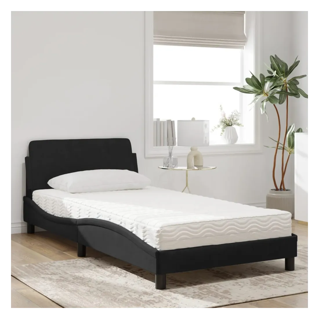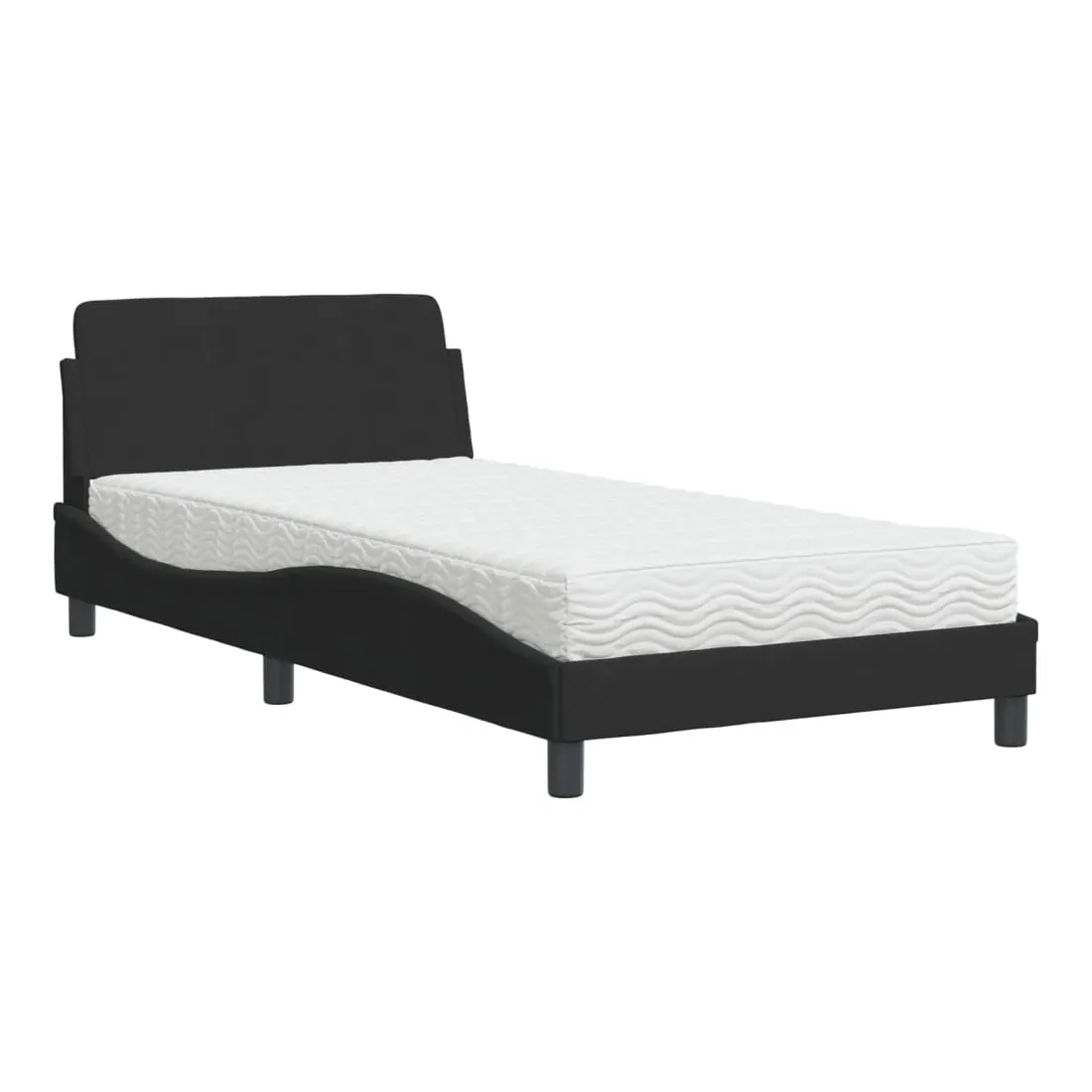 Obtenez une meilleure nuit de sommeil reposante grâce à ce lit avec matelas ! Il est un supplément accueillant à toute chambre à coucher. Velours doux : le velours est un tissu doux et confortable, agréable au toucher.Lattes de contreplaqué : les lattes de contreplaqué assurent une bonne répartition du poids, garantissant que le matelas reste en place à chaque torsion de votre corps pendant le sommeil.Excellent soutien : la tête de lit vous offre un excellent soutien du dos lorsque vous êtes assis dans votre lit pour lire ou regarder la télévision.Matelas en mousse : ce matelas de lit en tissu à 3 couches est rempli de mousse PU 22D pour un confort optimal. Il contribue à soulager la fatigue et à favoriser la circulation sanguine, vous offrant ainsi une relaxation complète et une bonne qualité de sommeil. En outre, le matelas est disponible en dureté H2 et H3, de sorte que vous pouvez simplement tourner le matelas pour choisir la dureté qui vous convient le mieux.Design latéral ondulé : l’aspect ondulé du cadre de lit est élégant et sophistiqué, ajoutant une touche moderne et élégante à votre décor, ce qui en fait le point central de votre chambre à coucher.