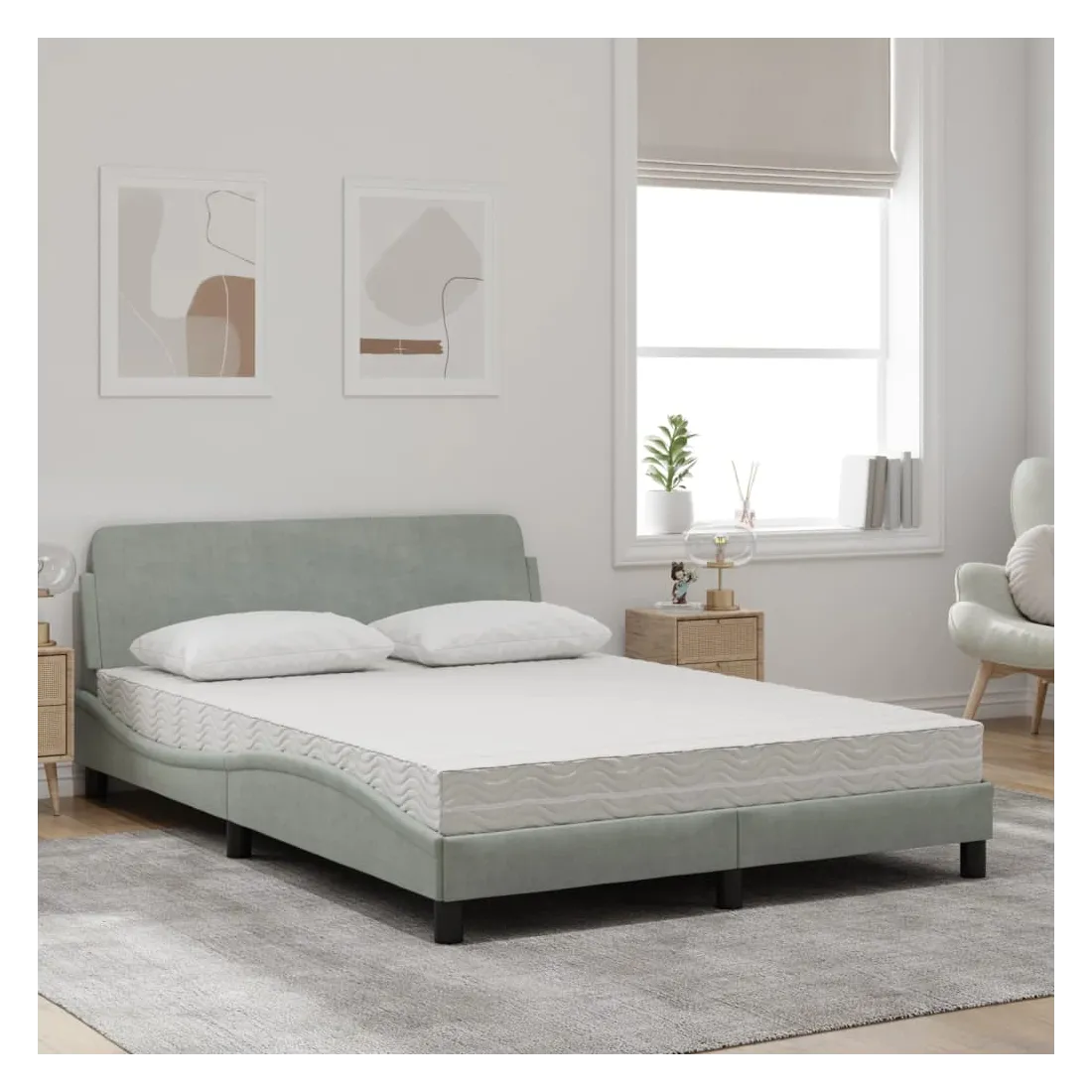 Obtenez une meilleure nuit de sommeil reposante grâce à ce lit avec matelas ! Il est un supplément accueillant à toute chambre à coucher. Velours doux : le velours est un tissu doux et confortable, agréable au toucher.Lattes de contreplaqué : les lattes de contreplaqué assurent une bonne répartition du poids, garantissant que le matelas reste en place à chaque torsion de votre corps pendant le sommeil.Excellent soutien : la tête de lit vous offre un excellent soutien du dos lorsque vous êtes assis dans votre lit pour lire ou regarder la télévision.Matelas en mousse : ce matelas de lit en tissu à 3 couches est rempli de mousse PU 22D pour un confort optimal. Il contribue à soulager la fatigue et à favoriser la circulation sanguine, vous offrant ainsi une relaxation complète et une bonne qualité de sommeil. En outre, le matelas est disponible en dureté H2 et H3, de sorte que vous pouvez simplement tourner le matelas pour choisir la dureté qui vous convient le mieux.Design latéral ondulé : l’aspect ondulé du cadre de lit est élégant et sophistiqué, ajoutant une touche moderne et élégante à votre décor, ce qui en fait le point central de votre chambre à coucher.