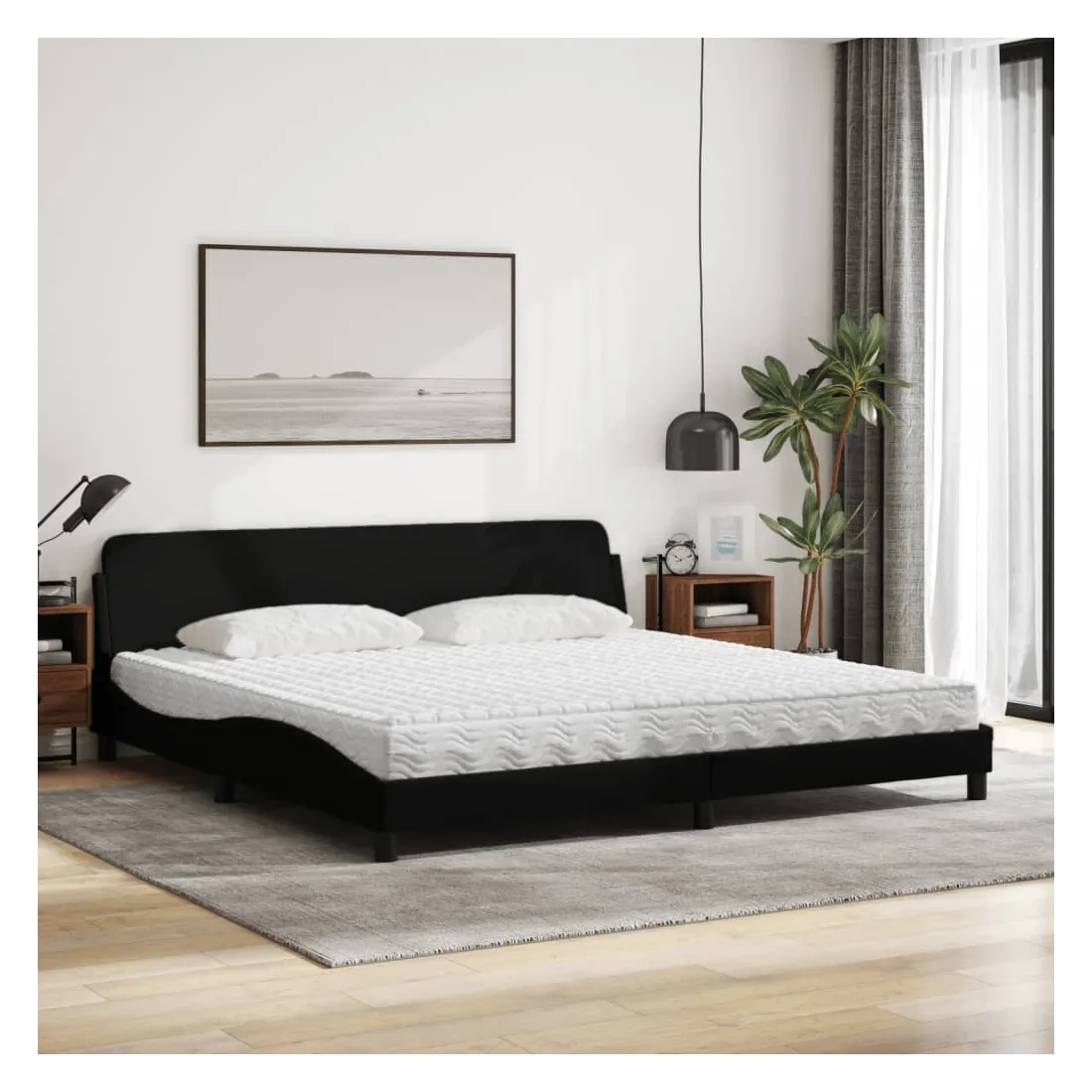 Obtenez une meilleure nuit de sommeil reposante grâce à ce lit avec matelas ! Il est un supplément accueillant à toute chambre à coucher. Tissu durable : le tissu présente un aspect simple et épuré, et il est respirant et durable.Lattes de contreplaqué : les lattes de contreplaqué assurent une bonne répartition du poids, garantissant que le matelas reste en place à chaque torsion de votre corps pendant le sommeil.Excellent soutien : la tête de lit vous offre un excellent soutien du dos lorsque vous êtes assis dans votre lit pour lire ou regarder la télévision.Matelas en mousse : ce matelas de lit en tissu à 3 couches est rempli de mousse PU 22D pour un confort optimal. Il contribue à soulager la fatigue et à favoriser la circulation sanguine, vous offrant ainsi une relaxation complète et une bonne qualité de sommeil. En outre, le matelas est disponible en dureté H2 et H3, de sorte que vous pouvez simplement tourner le matelas pour choisir la dureté qui vous convient le mieux.Design latéral ondulé : l’aspect ondulé du cadre de lit est élégant et sophistiqué, ajoutant une touche moderne et élégante à votre décor, ce qui en fait le point central de votre chambre à coucher.