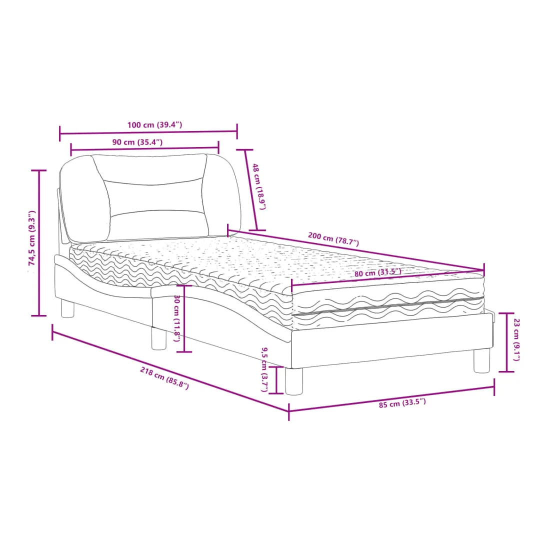 Obtenez une meilleure nuit de sommeil reposante grâce à ce lit avec matelas ! Il est un supplément accueillant à toute chambre à coucher. Tissu durable : le tissu présente un aspect simple et épuré, et il est respirant et durable.Lattes de contreplaqué : les lattes de contreplaqué assurent une bonne répartition du poids, garantissant que le matelas reste en place à chaque torsion de votre corps pendant le sommeil.Excellent soutien : la tête de lit vous offre un excellent soutien du dos lorsque vous êtes assis dans votre lit pour lire ou regarder la télévision.Matelas en mousse : ce matelas de lit en tissu à 3 couches est rempli de mousse PU 22D pour un confort optimal. Il contribue à soulager la fatigue et à favoriser la circulation sanguine, vous offrant ainsi une relaxation complète et une bonne qualité de sommeil. En outre, le matelas est disponible en dureté H2 et H3, de sorte que vous pouvez simplement tourner le matelas pour choisir la dureté qui vous convient le mieux.Design latéral ondulé : l’aspect ondulé du cadre de lit est élégant et sophistiqué, ajoutant une touche moderne et élégante à votre décor, ce qui en fait le point central de votre chambre à coucher.