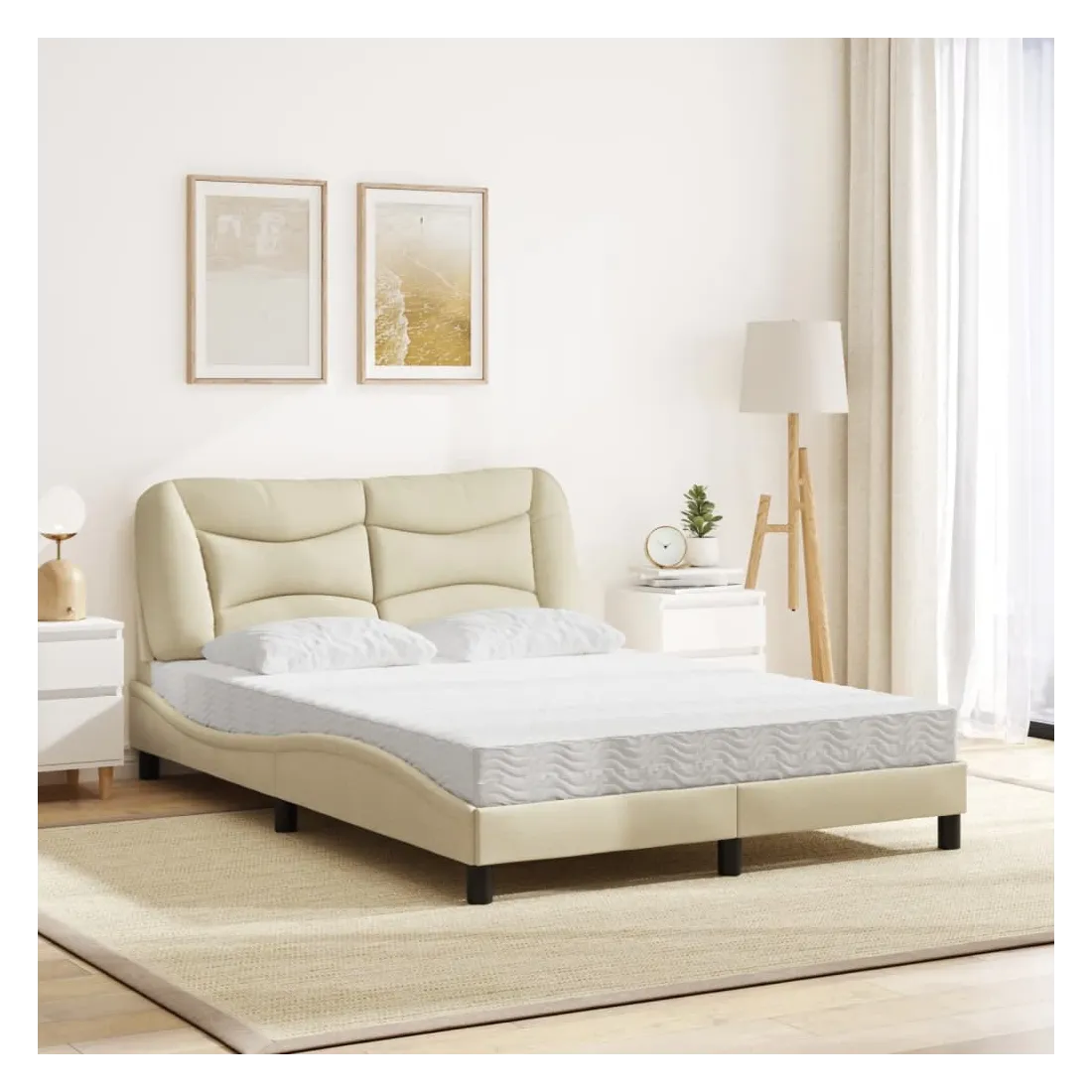 Obtenez une meilleure nuit de sommeil reposante grâce à ce lit avec matelas ! Il est un supplément accueillant à toute chambre à coucher. Tissu durable : le tissu présente un aspect simple et épuré, et il est respirant et durable.Lattes de contreplaqué : les lattes de contreplaqué assurent une bonne répartition du poids, garantissant que le matelas reste en place à chaque torsion de votre corps pendant le sommeil.Excellent soutien : la tête de lit vous offre un excellent soutien du dos lorsque vous êtes assis dans votre lit pour lire ou regarder la télévision.Matelas en mousse : ce matelas de lit en tissu à 3 couches est rempli de mousse PU 22D pour un confort optimal. Il contribue à soulager la fatigue et à favoriser la circulation sanguine, vous offrant ainsi une relaxation complète et une bonne qualité de sommeil. En outre, le matelas est disponible en dureté H2 et H3, de sorte que vous pouvez simplement tourner le matelas pour choisir la dureté qui vous convient le mieux.Design latéral ondulé : l’aspect ondulé du cadre de lit est élégant et sophistiqué, ajoutant une touche moderne et élégante à votre décor, ce qui en fait le point central de votre chambre à coucher.