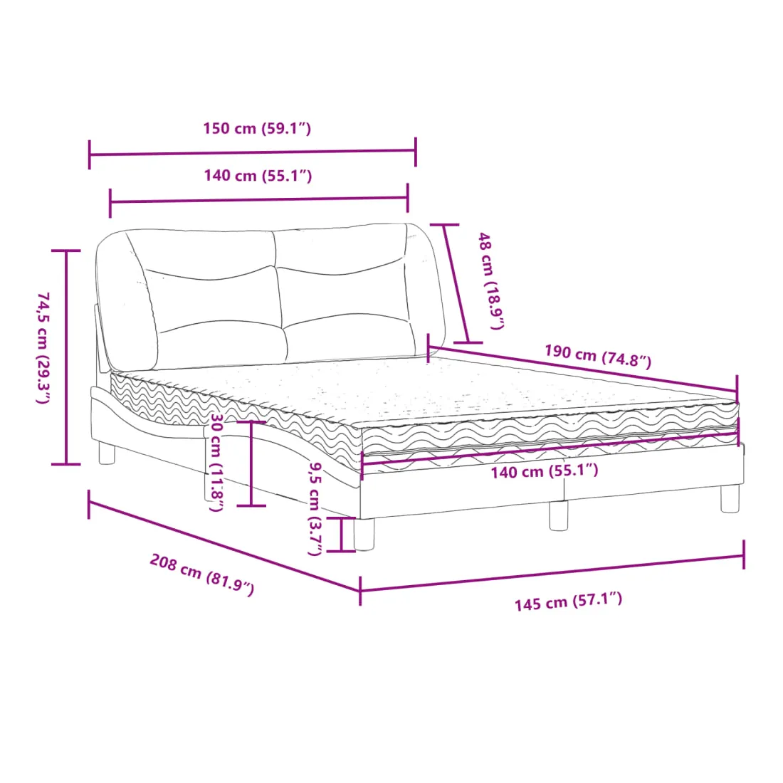 - Dimensions totales : 140 x 190 x 17 cm (l x L x é)