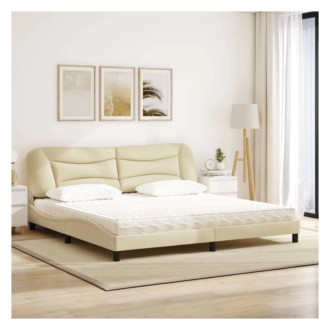 Obtenez une meilleure nuit de sommeil reposante grâce à ce lit avec matelas ! Il est un supplément accueillant à toute chambre à coucher. Tissu durable : le tissu présente un aspect simple et épuré, et il est respirant et durable.Lattes de contreplaqué : les lattes de contreplaqué assurent une bonne répartition du poids, garantissant que le matelas reste en place à chaque torsion de votre corps pendant le sommeil.Excellent soutien : la tête de lit vous offre un excellent soutien du dos lorsque vous êtes assis dans votre lit pour lire ou regarder la télévision.Matelas en mousse : ce matelas de lit en tissu à 3 couches est rempli de mousse PU 22D pour un confort optimal. Il contribue à soulager la fatigue et à favoriser la circulation sanguine, vous offrant ainsi une relaxation complète et une bonne qualité de sommeil. En outre, le matelas est disponible en dureté H2 et H3, de sorte que vous pouvez simplement tourner le matelas pour choisir la dureté qui vous convient le mieux.Design latéral ondulé : l’aspect ondulé du cadre de lit est élégant et sophistiqué, ajoutant une touche moderne et élégante à votre décor, ce qui en fait le point central de votre chambre à coucher.