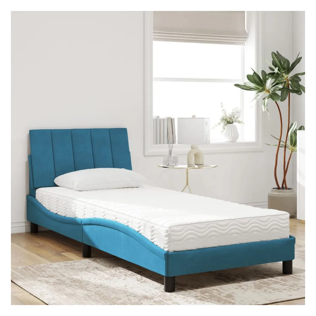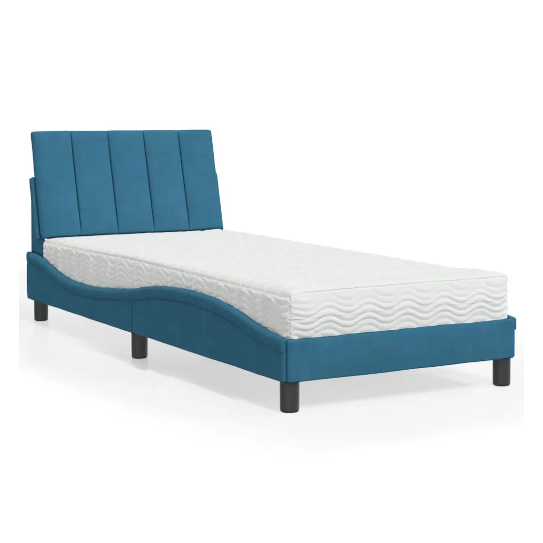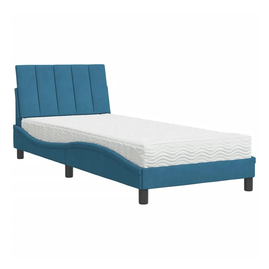 Obtenez une meilleure nuit de sommeil reposante grâce à ce lit avec matelas ! Il est un supplément accueillant à toute chambre à coucher. Velours doux : le velours est un tissu doux et confortable, agréable au toucher.Lattes de contreplaqué : les lattes de contreplaqué assurent une bonne répartition du poids, garantissant que le matelas reste en place à chaque torsion de votre corps pendant le sommeil.Excellent soutien : la tête de lit vous offre un excellent soutien du dos lorsque vous êtes assis dans votre lit pour lire ou regarder la télévision.Matelas en mousse : ce matelas de lit en tissu à 3 couches est rempli de mousse PU 22D pour un confort optimal. Il contribue à soulager la fatigue et à favoriser la circulation sanguine, vous offrant ainsi une relaxation complète et une bonne qualité de sommeil. En outre, le matelas est disponible en dureté H2 et H3, de sorte que vous pouvez simplement tourner le matelas pour choisir la dureté qui vous convient le mieux.Design latéral ondulé : l’aspect ondulé du cadre de lit est élégant et sophistiqué, ajoutant une touche moderne et élégante à votre décor, ce qui en fait le point central de votre chambre à coucher.