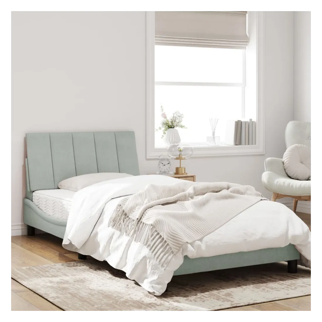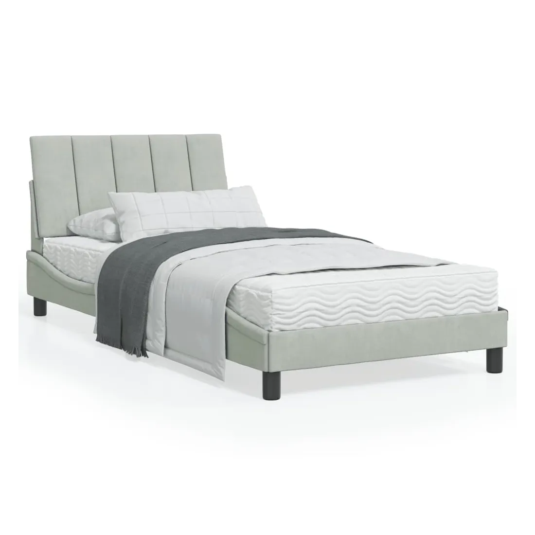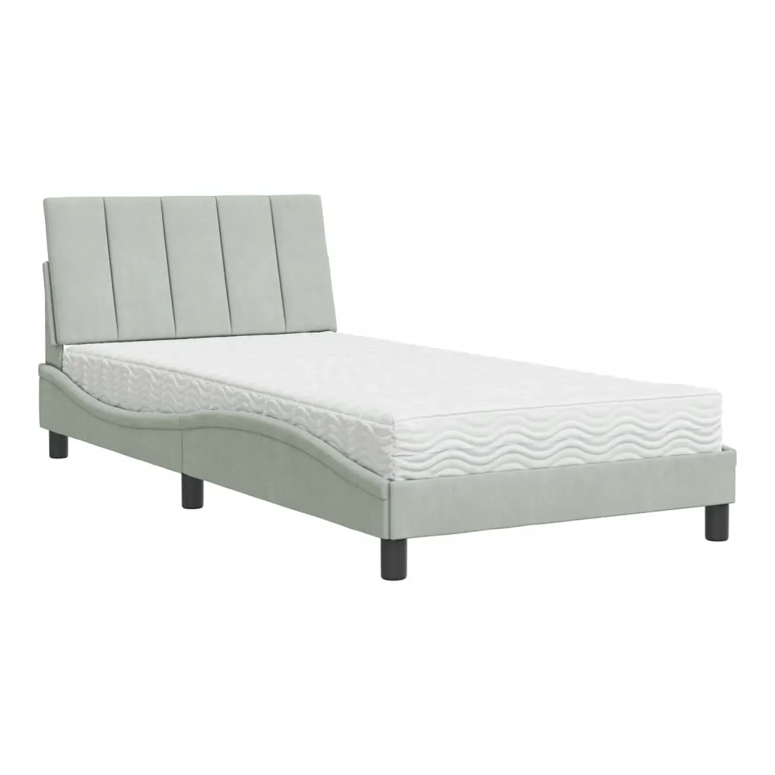 Obtenez une meilleure nuit de sommeil reposante grâce à ce lit avec matelas ! Il est un supplément accueillant à toute chambre à coucher. Velours doux : le velours est un tissu doux et confortable, agréable au toucher.Lattes de contreplaqué : les lattes de contreplaqué assurent une bonne répartition du poids, garantissant que le matelas reste en place à chaque torsion de votre corps pendant le sommeil.Excellent soutien : la tête de lit vous offre un excellent soutien du dos lorsque vous êtes assis dans votre lit pour lire ou regarder la télévision.Matelas en mousse : ce matelas de lit en tissu à 3 couches est rempli de mousse PU 22D pour un confort optimal. Il contribue à soulager la fatigue et à favoriser la circulation sanguine, vous offrant ainsi une relaxation complète et une bonne qualité de sommeil. En outre, le matelas est disponible en dureté H2 et H3, de sorte que vous pouvez simplement tourner le matelas pour choisir la dureté qui vous convient le mieux.Design latéral ondulé : l’aspect ondulé du cadre de lit est élégant et sophistiqué, ajoutant une touche moderne et élégante à votre décor, ce qui en fait le point central de votre chambre à coucher.