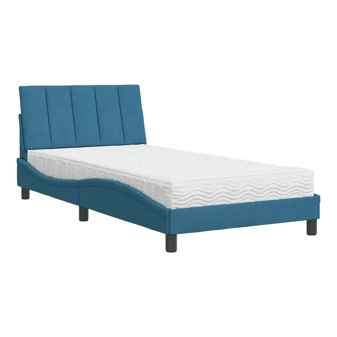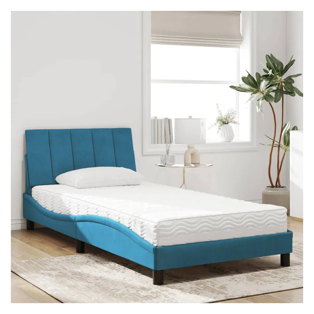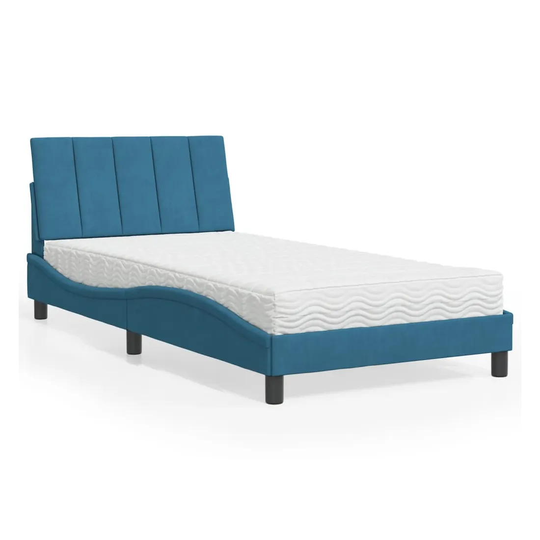 Obtenez une meilleure nuit de sommeil reposante grâce à ce lit avec matelas ! Il est un supplément accueillant à toute chambre à coucher. Velours doux : le velours est un tissu doux et confortable, agréable au toucher.Lattes de contreplaqué : les lattes de contreplaqué assurent une bonne répartition du poids, garantissant que le matelas reste en place à chaque torsion de votre corps pendant le sommeil.Excellent soutien : la tête de lit vous offre un excellent soutien du dos lorsque vous êtes assis dans votre lit pour lire ou regarder la télévision.Matelas en mousse : ce matelas de lit en tissu à 3 couches est rempli de mousse PU 22D pour un confort optimal. Il contribue à soulager la fatigue et à favoriser la circulation sanguine, vous offrant ainsi une relaxation complète et une bonne qualité de sommeil. En outre, le matelas est disponible en dureté H2 et H3, de sorte que vous pouvez simplement tourner le matelas pour choisir la dureté qui vous convient le mieux.Design latéral ondulé : l’aspect ondulé du cadre de lit est élégant et sophistiqué, ajoutant une touche moderne et élégante à votre décor, ce qui en fait le point central de votre chambre à coucher.