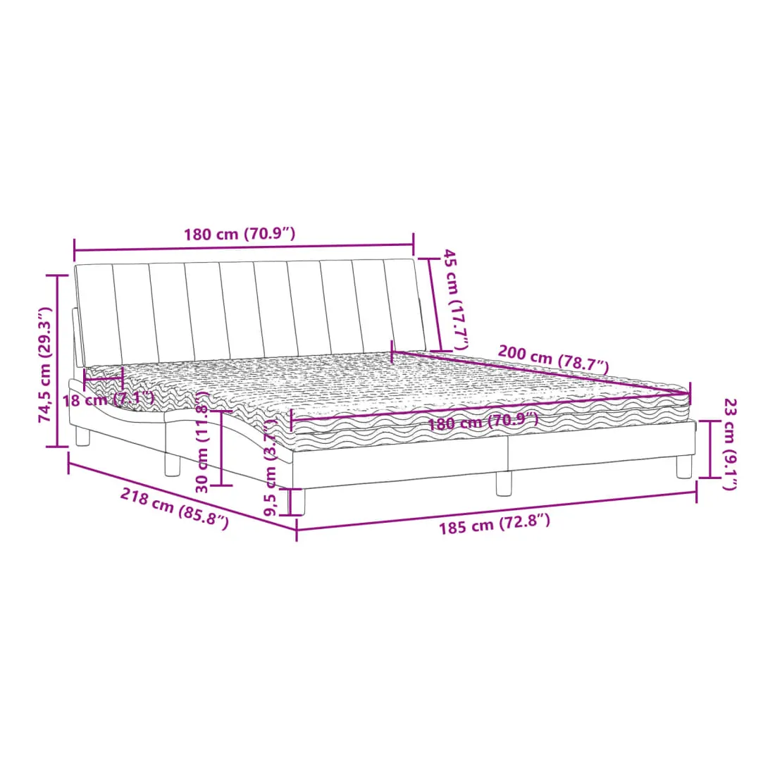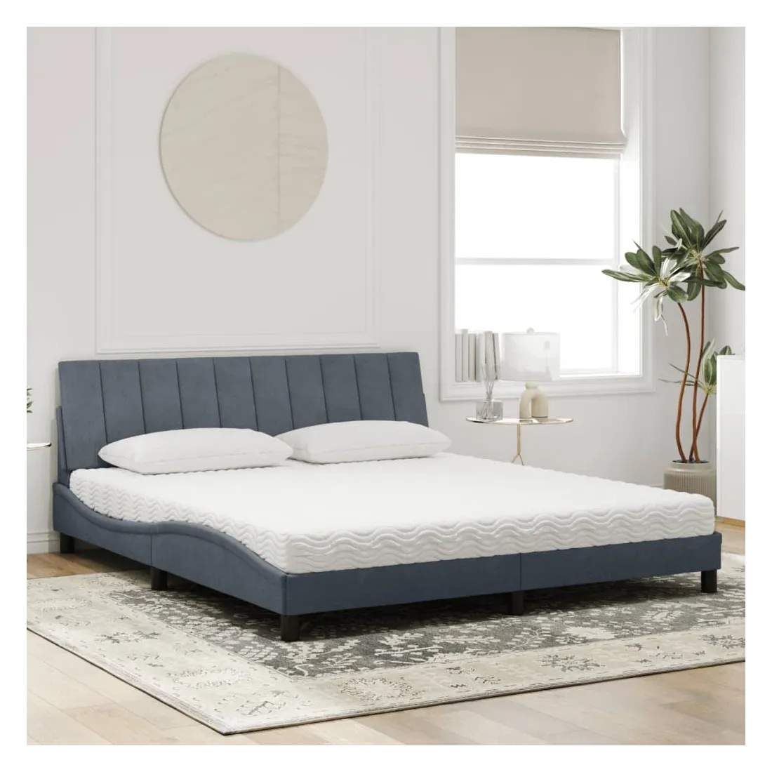 Obtenez une meilleure nuit de sommeil reposante grâce à ce lit avec matelas ! Il est un supplément accueillant à toute chambre à coucher. Velours doux : le velours est un tissu doux et confortable, agréable au toucher.Lattes de contreplaqué : les lattes de contreplaqué assurent une bonne répartition du poids, garantissant que le matelas reste en place à chaque torsion de votre corps pendant le sommeil.Excellent soutien : la tête de lit vous offre un excellent soutien du dos lorsque vous êtes assis dans votre lit pour lire ou regarder la télévision.Matelas en mousse : ce matelas de lit en tissu à 3 couches est rempli de mousse PU 22D pour un confort optimal. Il contribue à soulager la fatigue et à favoriser la circulation sanguine, vous offrant ainsi une relaxation complète et une bonne qualité de sommeil. En outre, le matelas est disponible en dureté H2 et H3, de sorte que vous pouvez simplement tourner le matelas pour choisir la dureté qui vous convient le mieux.Design latéral ondulé : l’aspect ondulé du cadre de lit est élégant et sophistiqué, ajoutant une touche moderne et élégante à votre décor, ce qui en fait le point central de votre chambre à coucher.