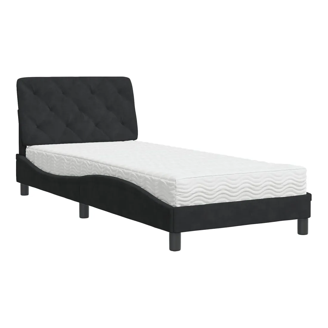 Obtenez une meilleure nuit de sommeil reposante grâce à ce lit avec matelas ! Il est un supplément accueillant à toute chambre à coucher. Velours doux : le velours est un tissu doux et confortable, agréable au toucher.Lattes de contreplaqué : les lattes de contreplaqué assurent une bonne répartition du poids, garantissant que le matelas reste en place à chaque torsion de votre corps pendant le sommeil.Excellent soutien : la tête de lit vous offre un excellent soutien du dos lorsque vous êtes assis dans votre lit pour lire ou regarder la télévision.Matelas en mousse : ce matelas de lit en tissu à 3 couches est rempli de mousse PU 22D pour un confort optimal. Il contribue à soulager la fatigue et à favoriser la circulation sanguine, vous offrant ainsi une relaxation complète et une bonne qualité de sommeil. En outre, le matelas est disponible en dureté H2 et H3, de sorte que vous pouvez simplement tourner le matelas pour choisir la dureté qui vous convient le mieux.Design latéral ondulé : l’aspect ondulé du cadre de lit est élégant et sophistiqué, ajoutant une touche moderne et élégante à votre décor, ce qui en fait le point central de votre chambre à coucher.