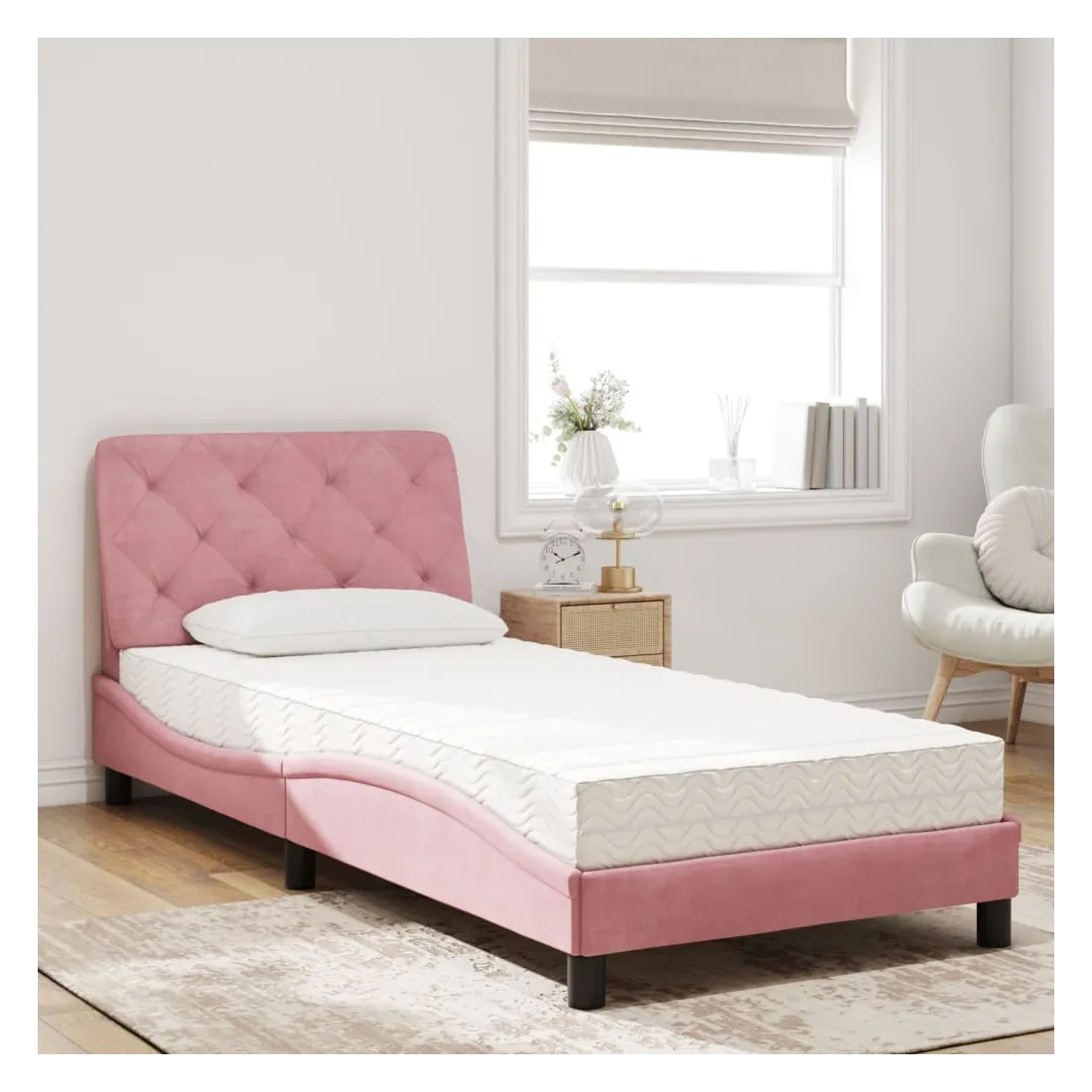 Obtenez une meilleure nuit de sommeil reposante grâce à ce lit avec matelas ! Il est un supplément accueillant à toute chambre à coucher. Velours doux : le velours est un tissu doux et confortable, agréable au toucher.Lattes de contreplaqué : les lattes de contreplaqué assurent une bonne répartition du poids, garantissant que le matelas reste en place à chaque torsion de votre corps pendant le sommeil.Excellent soutien : la tête de lit vous offre un excellent soutien du dos lorsque vous êtes assis dans votre lit pour lire ou regarder la télévision.Matelas en mousse : ce matelas de lit en tissu à 3 couches est rempli de mousse PU 22D pour un confort optimal. Il contribue à soulager la fatigue et à favoriser la circulation sanguine, vous offrant ainsi une relaxation complète et une bonne qualité de sommeil. En outre, le matelas est disponible en dureté H2 et H3, de sorte que vous pouvez simplement tourner le matelas pour choisir la dureté qui vous convient le mieux.Design latéral ondulé : l’aspect ondulé du cadre de lit est élégant et sophistiqué, ajoutant une touche moderne et élégante à votre décor, ce qui en fait le point central de votre chambre à coucher.