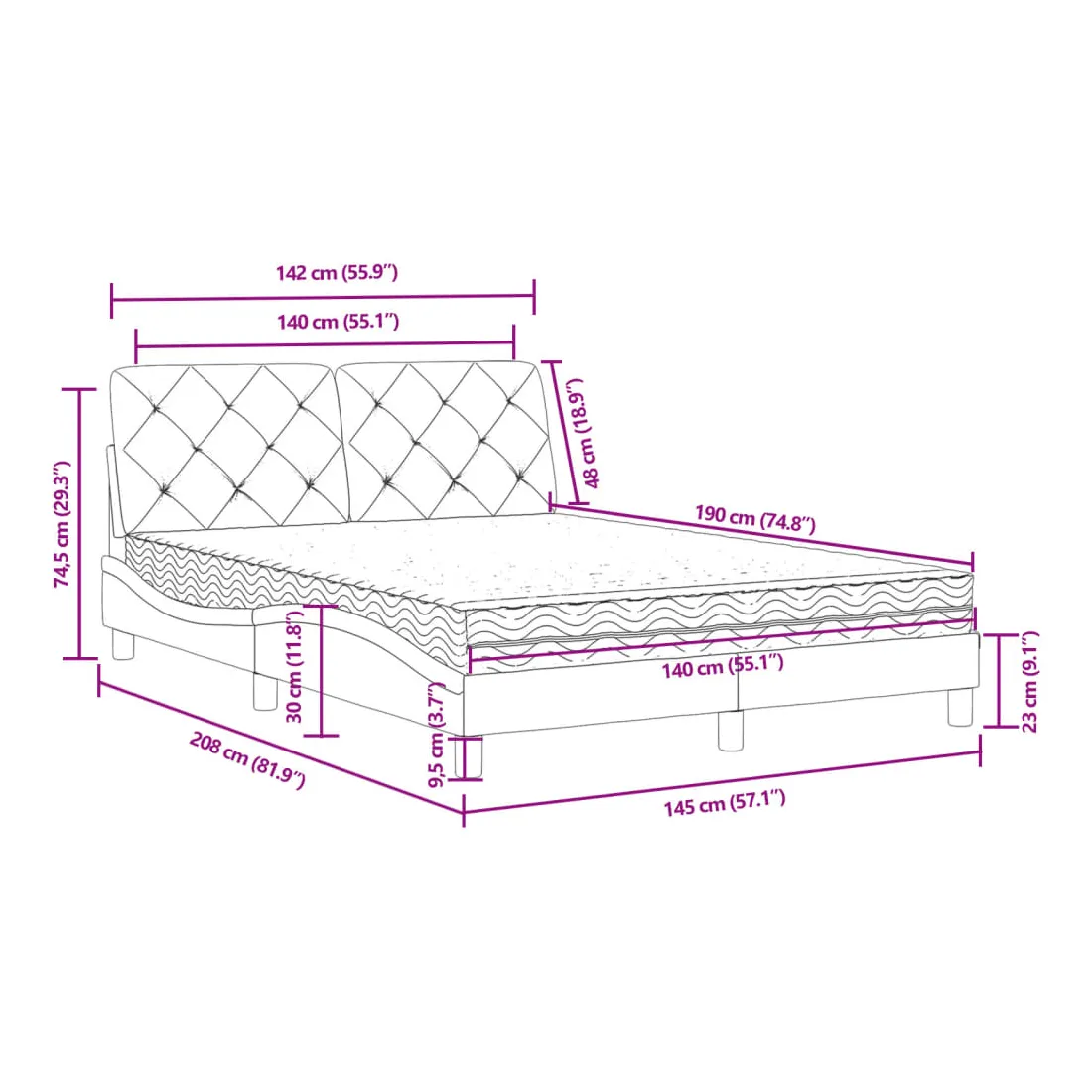 Obtenez une meilleure nuit de sommeil reposante grâce à ce lit avec matelas ! Il est un supplément accueillant à toute chambre à coucher. Velours doux : le velours est un tissu doux et confortable, agréable au toucher.Lattes de contreplaqué : les lattes de contreplaqué assurent une bonne répartition du poids, garantissant que le matelas reste en place à chaque torsion de votre corps pendant le sommeil.Excellent soutien : la tête de lit vous offre un excellent soutien du dos lorsque vous êtes assis dans votre lit pour lire ou regarder la télévision.Matelas en mousse : ce matelas de lit en tissu à 3 couches est rempli de mousse PU 22D pour un confort optimal. Il contribue à soulager la fatigue et à favoriser la circulation sanguine, vous offrant ainsi une relaxation complète et une bonne qualité de sommeil. En outre, le matelas est disponible en dureté H2 et H3, de sorte que vous pouvez simplement tourner le matelas pour choisir la dureté qui vous convient le mieux.Design latéral ondulé : l’aspect ondulé du cadre de lit est élégant et sophistiqué, ajoutant une touche moderne et élégante à votre décor, ce qui en fait le point central de votre chambre à coucher.