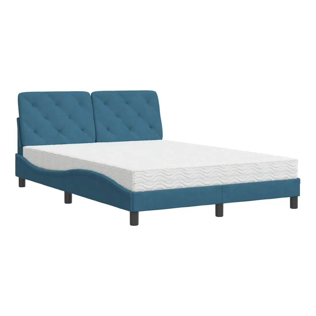 Obtenez une meilleure nuit de sommeil reposante grâce à ce lit avec matelas ! Il est un supplément accueillant à toute chambre à coucher. Velours doux : le velours est un tissu doux et confortable, agréable au toucher.Lattes de contreplaqué : les lattes de contreplaqué assurent une bonne répartition du poids, garantissant que le matelas reste en place à chaque torsion de votre corps pendant le sommeil.Excellent soutien : la tête de lit vous offre un excellent soutien du dos lorsque vous êtes assis dans votre lit pour lire ou regarder la télévision.Matelas en mousse : ce matelas de lit en tissu à 3 couches est rempli de mousse PU 22D pour un confort optimal. Il contribue à soulager la fatigue et à favoriser la circulation sanguine, vous offrant ainsi une relaxation complète et une bonne qualité de sommeil. En outre, le matelas est disponible en dureté H2 et H3, de sorte que vous pouvez simplement tourner le matelas pour choisir la dureté qui vous convient le mieux.Design latéral ondulé : l’aspect ondulé du cadre de lit est élégant et sophistiqué, ajoutant une touche moderne et élégante à votre décor, ce qui en fait le point central de votre chambre à coucher.
