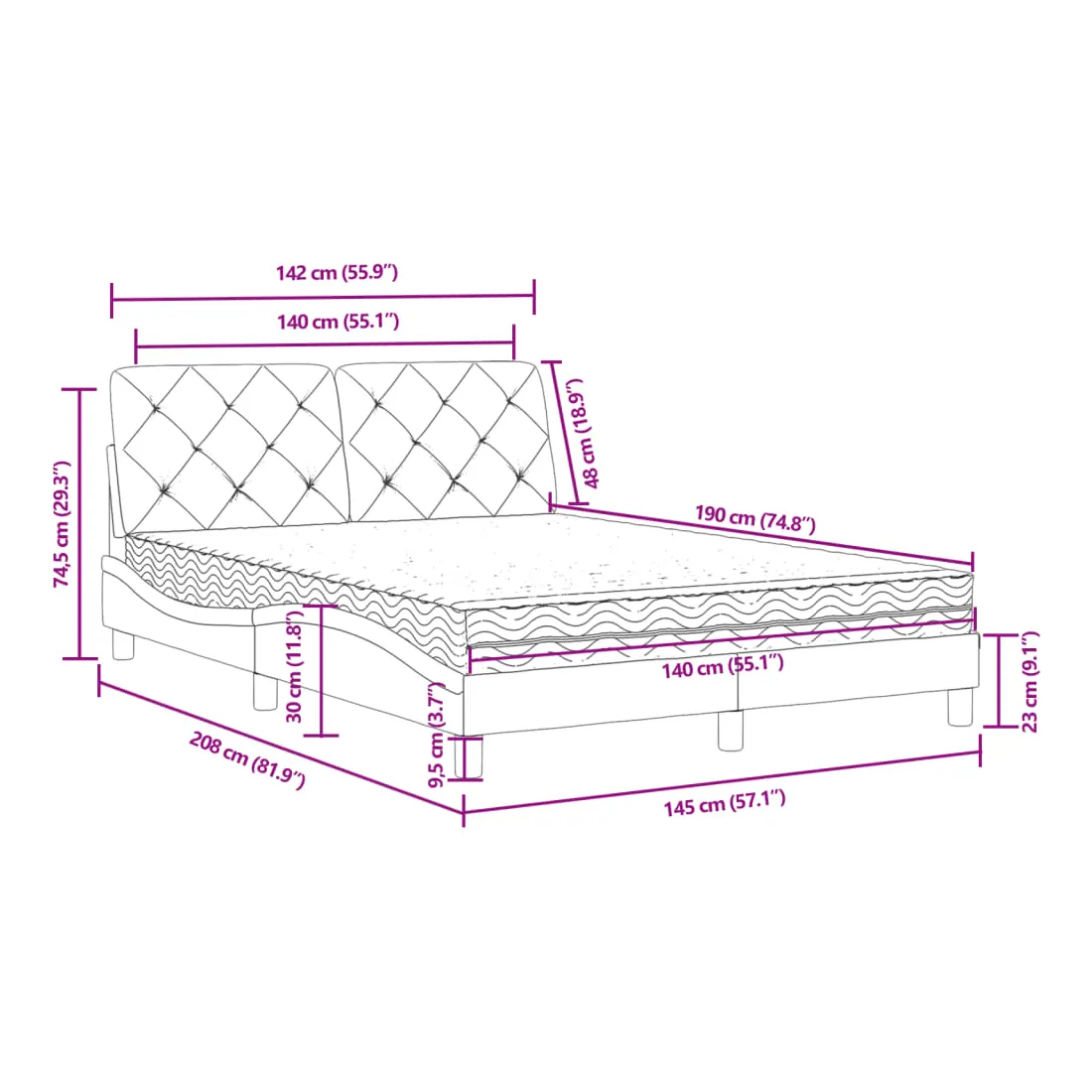 - Dimensions totales : 140 x 190 x 17 cm (l x L x é)