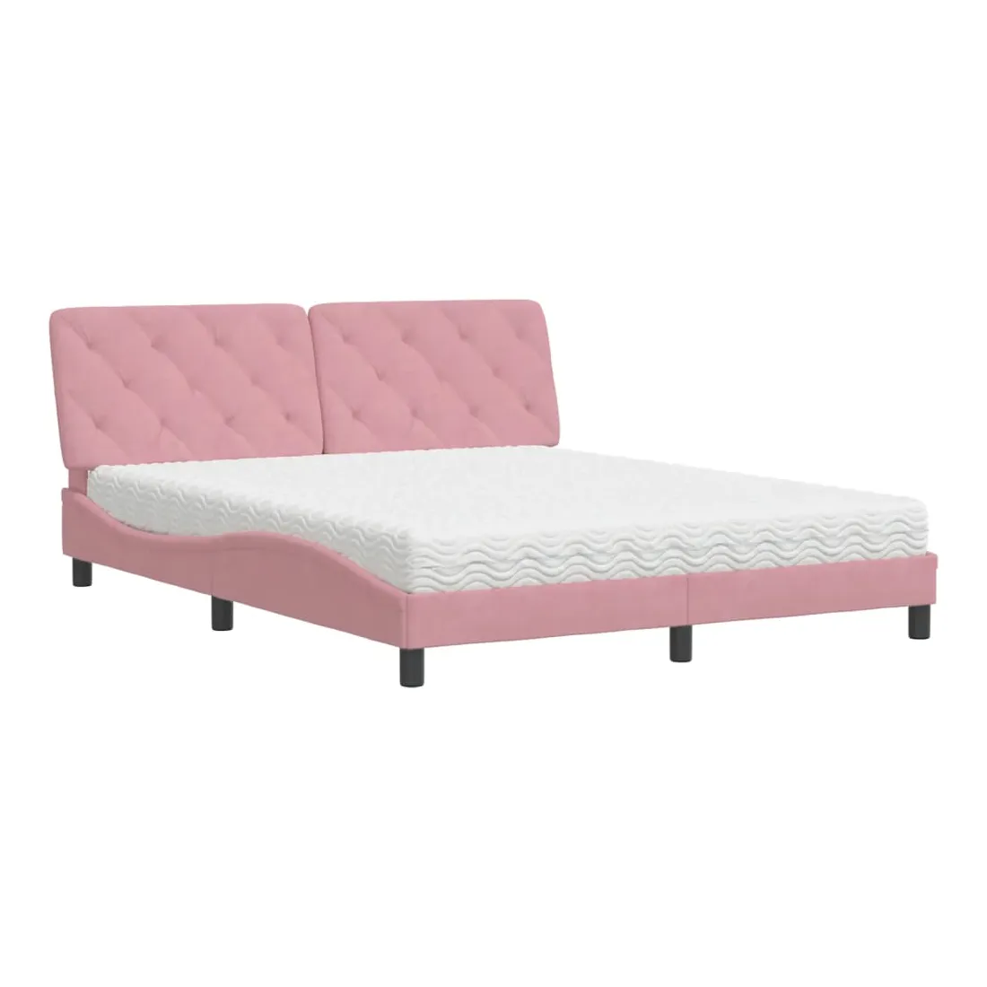Obtenez une meilleure nuit de sommeil reposante grâce à ce lit avec matelas ! Il est un supplément accueillant à toute chambre à coucher. Velours doux : le velours est un tissu doux et confortable, agréable au toucher.Lattes de contreplaqué : les lattes de contreplaqué assurent une bonne répartition du poids, garantissant que le matelas reste en place à chaque torsion de votre corps pendant le sommeil.Excellent soutien : la tête de lit vous offre un excellent soutien du dos lorsque vous êtes assis dans votre lit pour lire ou regarder la télévision.Matelas en mousse : ce matelas de lit en tissu à 3 couches est rempli de mousse PU 22D pour un confort optimal. Il contribue à soulager la fatigue et à favoriser la circulation sanguine, vous offrant ainsi une relaxation complète et une bonne qualité de sommeil. En outre, le matelas est disponible en dureté H2 et H3, de sorte que vous pouvez simplement tourner le matelas pour choisir la dureté qui vous convient le mieux.Design latéral ondulé : l’aspect ondulé du cadre de lit est élégant et sophistiqué, ajoutant une touche moderne et élégante à votre décor, ce qui en fait le point central de votre chambre à coucher.