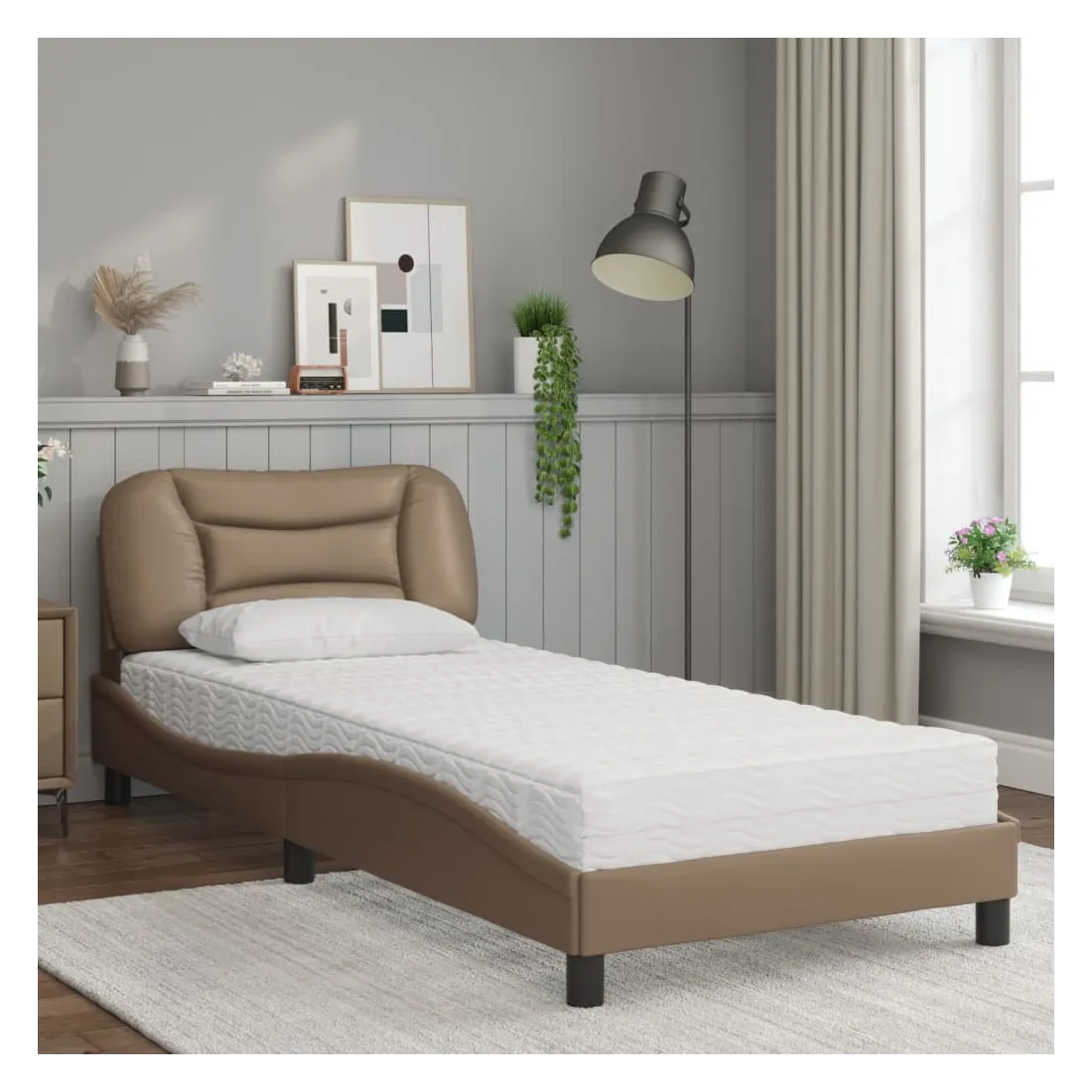 Obtenez une meilleure nuit de sommeil reposante grâce à ce lit avec matelas ! Il est un supplément accueillant à toute chambre à coucher. Similicuir durable : le similicuir de qualité supérieure est un matériau très durable. Il est résistant aux taches, ce qui le rend facile à nettoyer avec un chiffon humide. La surface lisse donne également un aspect luxueux et la beauté du cuir véritable.Lattes de contreplaqué : les lattes de contreplaqué assurent une bonne répartition du poids, garantissant que le matelas reste en place à chaque torsion de votre corps pendant le sommeil.Excellent soutien : la tête de lit vous offre un excellent soutien du dos lorsque vous êtes assis dans votre lit pour lire ou regarder la télévision.Matelas en mousse : ce matelas de lit en tissu à 3 couches est rempli de mousse PU 22D pour un confort optimal. Il contribue à soulager la fatigue et à favoriser la circulation sanguine, vous offrant ainsi une relaxation complète et une bonne qualité de sommeil. En outre, le matelas est disponible en dureté H2 et H3, de sorte que vous pouvez simplement tourner le matelas pour choisir la dureté qui vous convient le mieux.Design latéral ondulé : l’aspect ondulé du cadre de lit est élégant et sophistiqué, ajoutant une touche moderne et élégante à votre décor, ce qui en fait le point central de votre chambre à coucher.