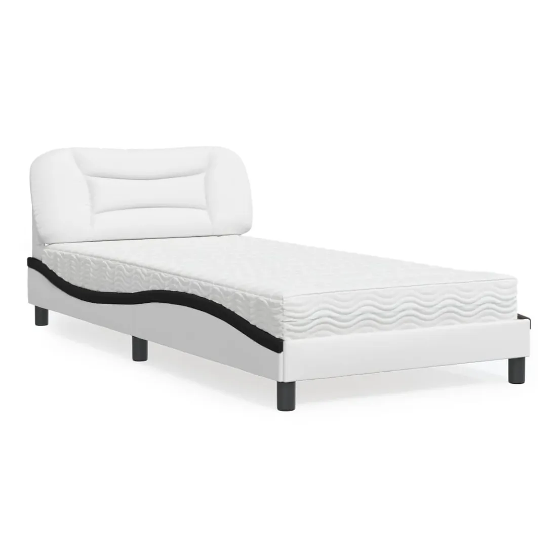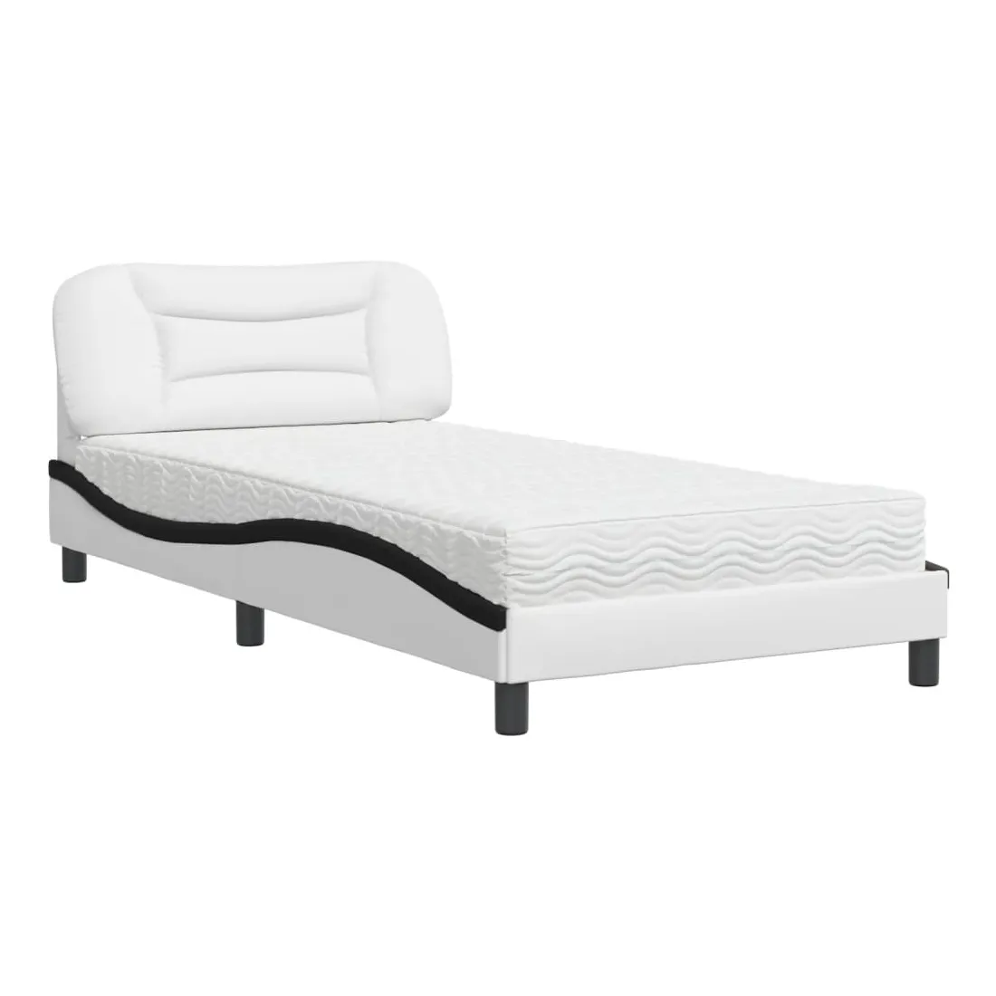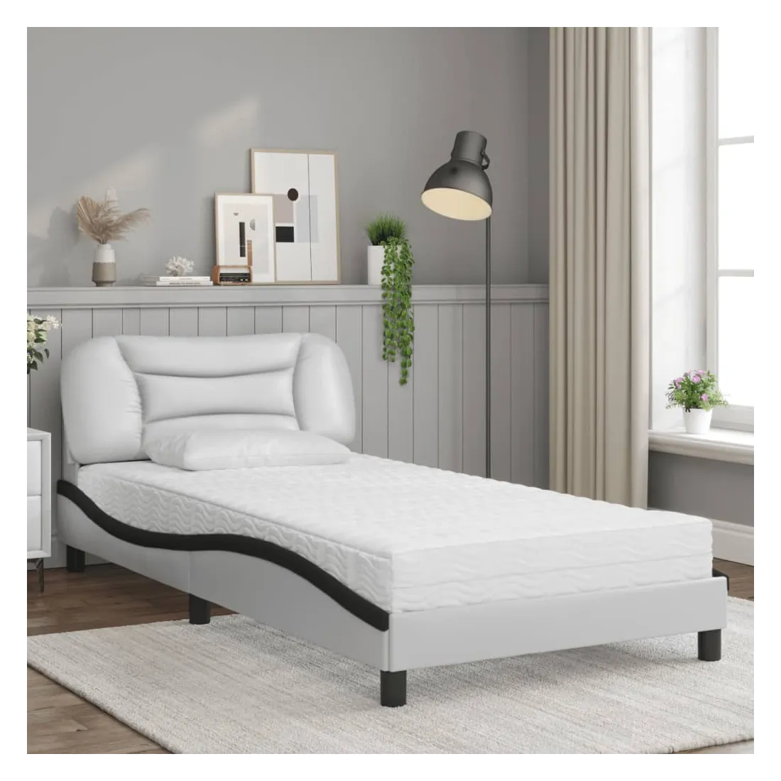 Obtenez une meilleure nuit de sommeil reposante grâce à ce lit avec matelas ! Il est un supplément accueillant à toute chambre à coucher. Similicuir durable : le similicuir de qualité supérieure est un matériau très durable. Il est résistant aux taches, ce qui le rend facile à nettoyer avec un chiffon humide. La surface lisse donne également un aspect luxueux et la beauté du cuir véritable.Lattes de contreplaqué : les lattes de contreplaqué assurent une bonne répartition du poids, garantissant que le matelas reste en place à chaque torsion de votre corps pendant le sommeil.Excellent soutien : la tête de lit vous offre un excellent soutien du dos lorsque vous êtes assis dans votre lit pour lire ou regarder la télévision.Matelas en mousse : ce matelas de lit en tissu à 3 couches est rempli de mousse PU 22D pour un confort optimal. Il contribue à soulager la fatigue et à favoriser la circulation sanguine, vous offrant ainsi une relaxation complète et une bonne qualité de sommeil. En outre, le matelas est disponible en dureté H2 et H3, de sorte que vous pouvez simplement tourner le matelas pour choisir la dureté qui vous convient le mieux.Design latéral ondulé : l’aspect ondulé du cadre de lit est élégant et sophistiqué, ajoutant une touche moderne et élégante à votre décor, ce qui en fait le point central de votre chambre à coucher.