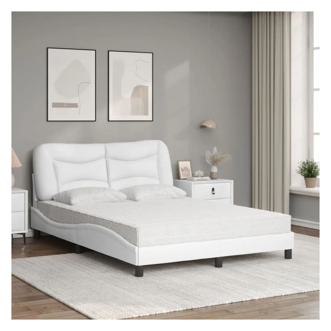 Obtenez une meilleure nuit de sommeil reposante grâce à ce lit avec matelas ! Il est un supplément accueillant à toute chambre à coucher. Similicuir durable : le similicuir de qualité supérieure est un matériau très durable. Il est résistant aux taches, ce qui le rend facile à nettoyer avec un chiffon humide. La surface lisse donne également un aspect luxueux et la beauté du cuir véritable.Lattes de contreplaqué : les lattes de contreplaqué assurent une bonne répartition du poids, garantissant que le matelas reste en place à chaque torsion de votre corps pendant le sommeil.Excellent soutien : la tête de lit vous offre un excellent soutien du dos lorsque vous êtes assis dans votre lit pour lire ou regarder la télévision.Matelas en mousse : ce matelas de lit en tissu à 3 couches est rempli de mousse PU 22D pour un confort optimal. Il contribue à soulager la fatigue et à favoriser la circulation sanguine, vous offrant ainsi une relaxation complète et une bonne qualité de sommeil. En outre, le matelas est disponible en dureté H2 et H3, de sorte que vous pouvez simplement tourner le matelas pour choisir la dureté qui vous convient le mieux.Design latéral ondulé : l’aspect ondulé du cadre de lit est élégant et sophistiqué, ajoutant une touche moderne et élégante à votre décor, ce qui en fait le point central de votre chambre à coucher.